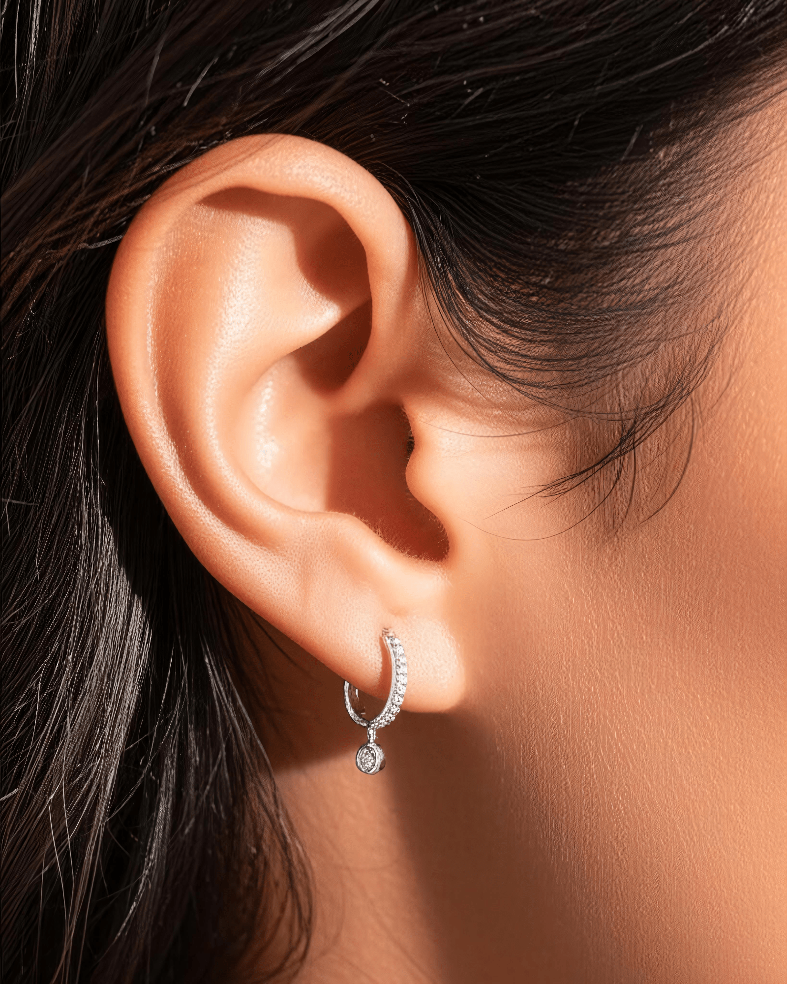 Luz en movimiento para cada día. Las Argollas Moissanita Punto de Luz Silver están diseñadas en plata de ley 925 y combinan un estilo delicado, elegante y atemporal, perfecto para el uso diario o para elevar cualquier look con sutileza.