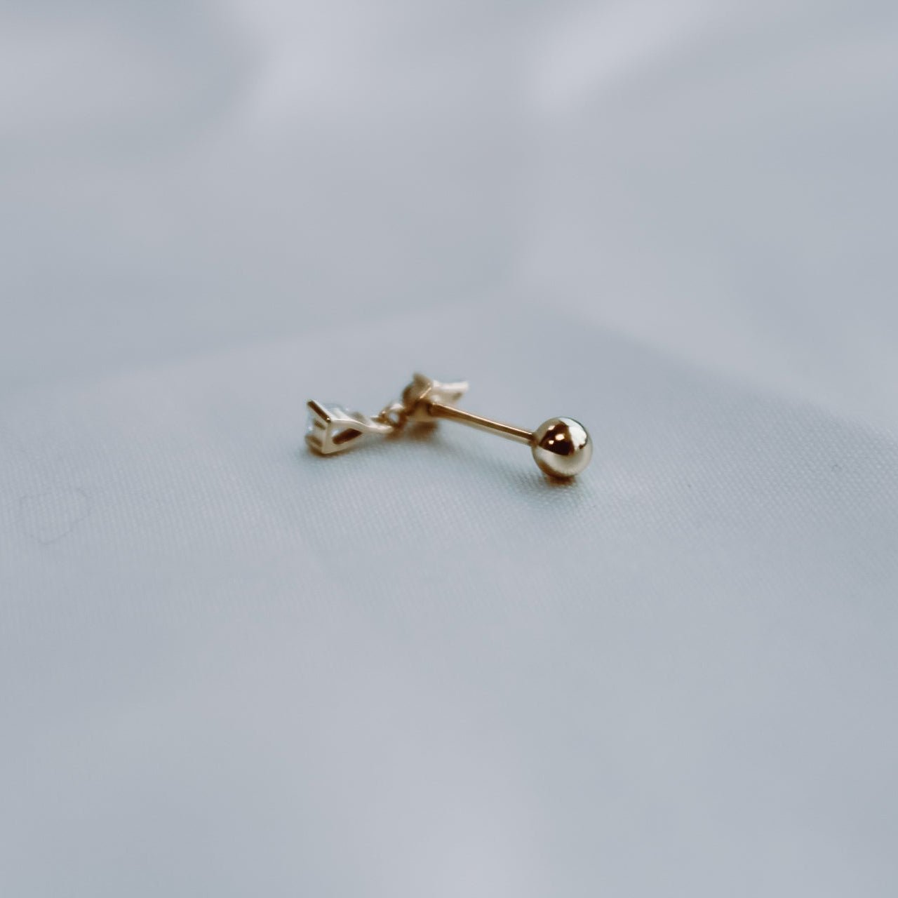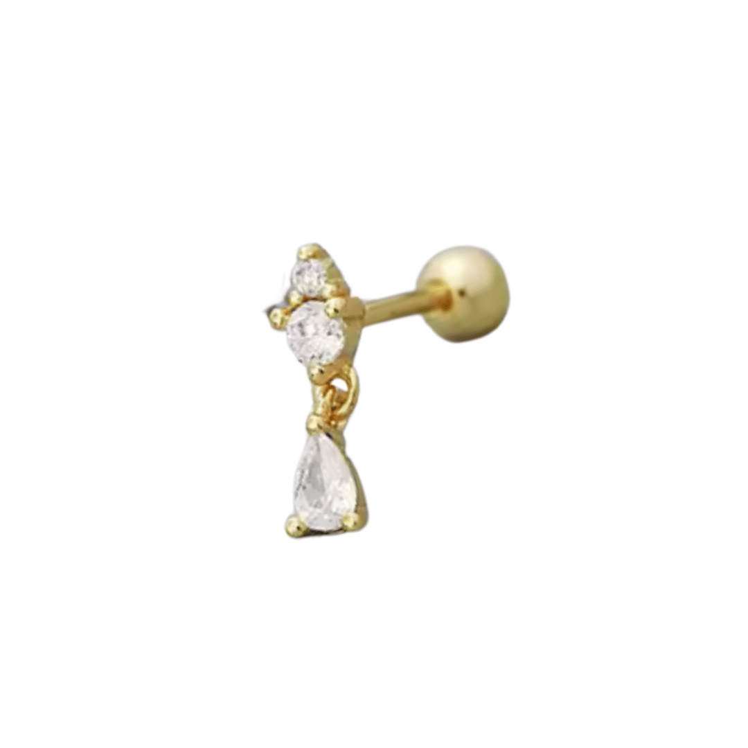 Un diseño delicado que aporta movimiento y sofisticación. Destaca por su silueta fina y elegante, con una caída sutil que estiliza y realza. Su composición de circones en degradé —un mini circon superior, un circon central y un circon colgante en forma de gota— crea un efecto luminoso y armonioso.