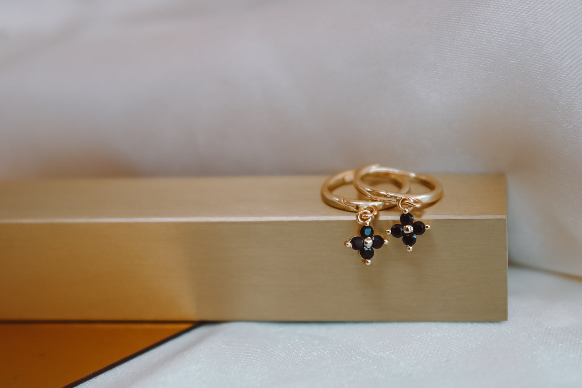 Un diseño femenino y luminoso para acompañarte todos los días. Las Argollas Flower Gold están elaboradas en plata de ley 925 enchapada en oro 18k y cuentan con una argolla de 10 mm de la que cuelga una delicada flor engastada con 4 circones negros, aportando un brillo sutil y elegante.