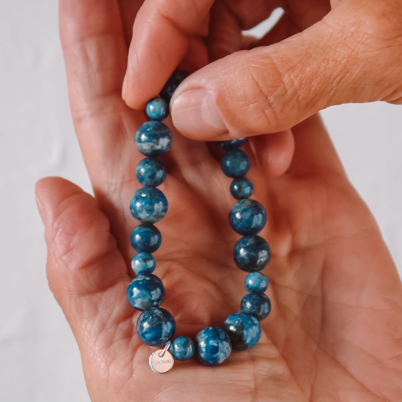 Una joya con alma que potencia tu voz y tu intuición. La Pulsera Aura Lapislázuli, compuesta por piedras naturales en esferas de distintos tamaños, tiene diseño elasticado para un uso cómodo y práctico, con terminaciones en plata 925.