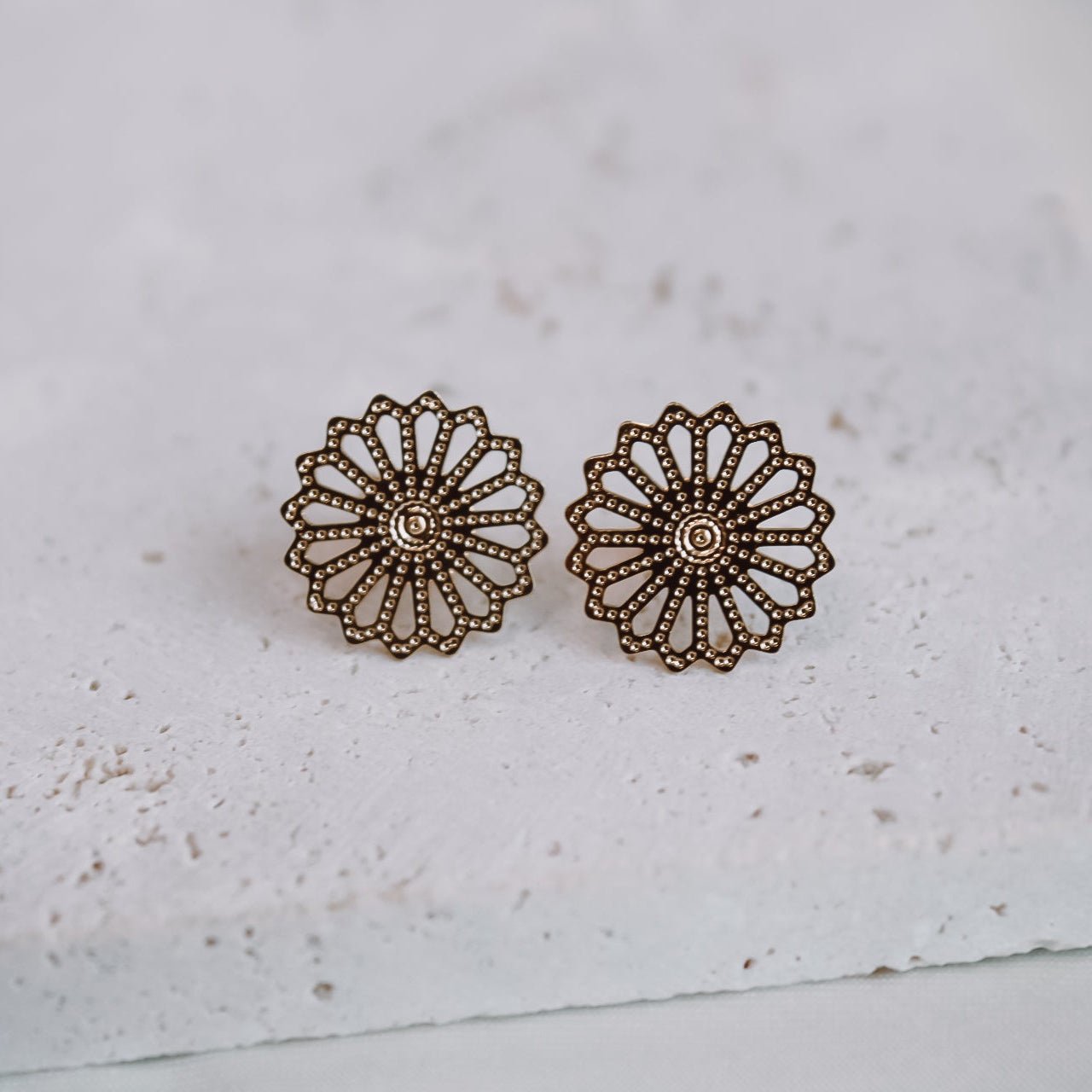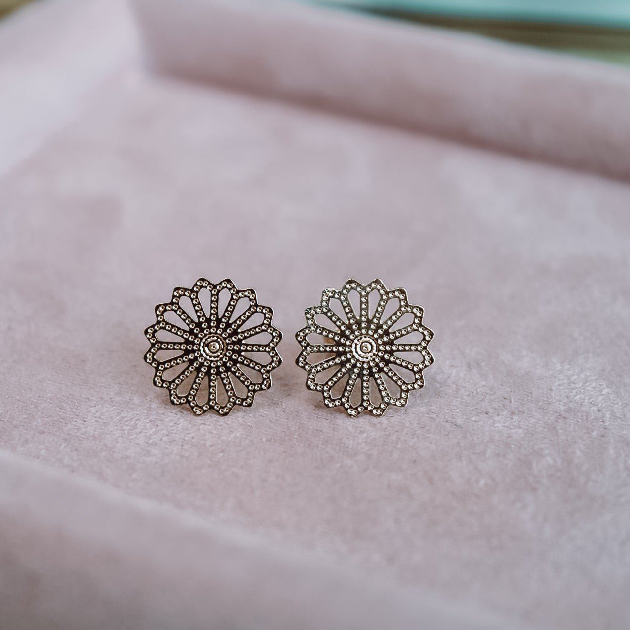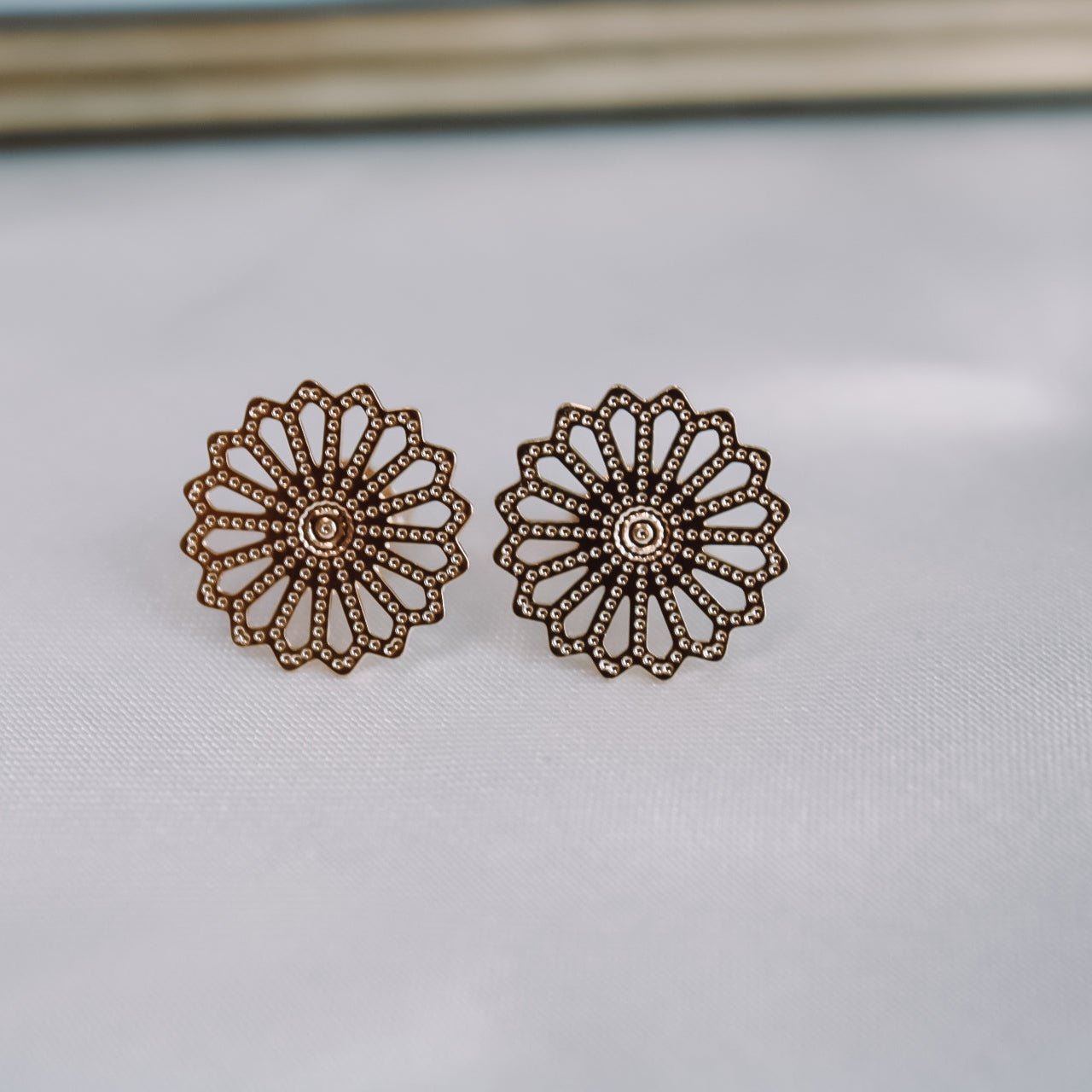 Aros Mandala Baño de oro 18k No mojar, ni exponer a químicos ni cloro.