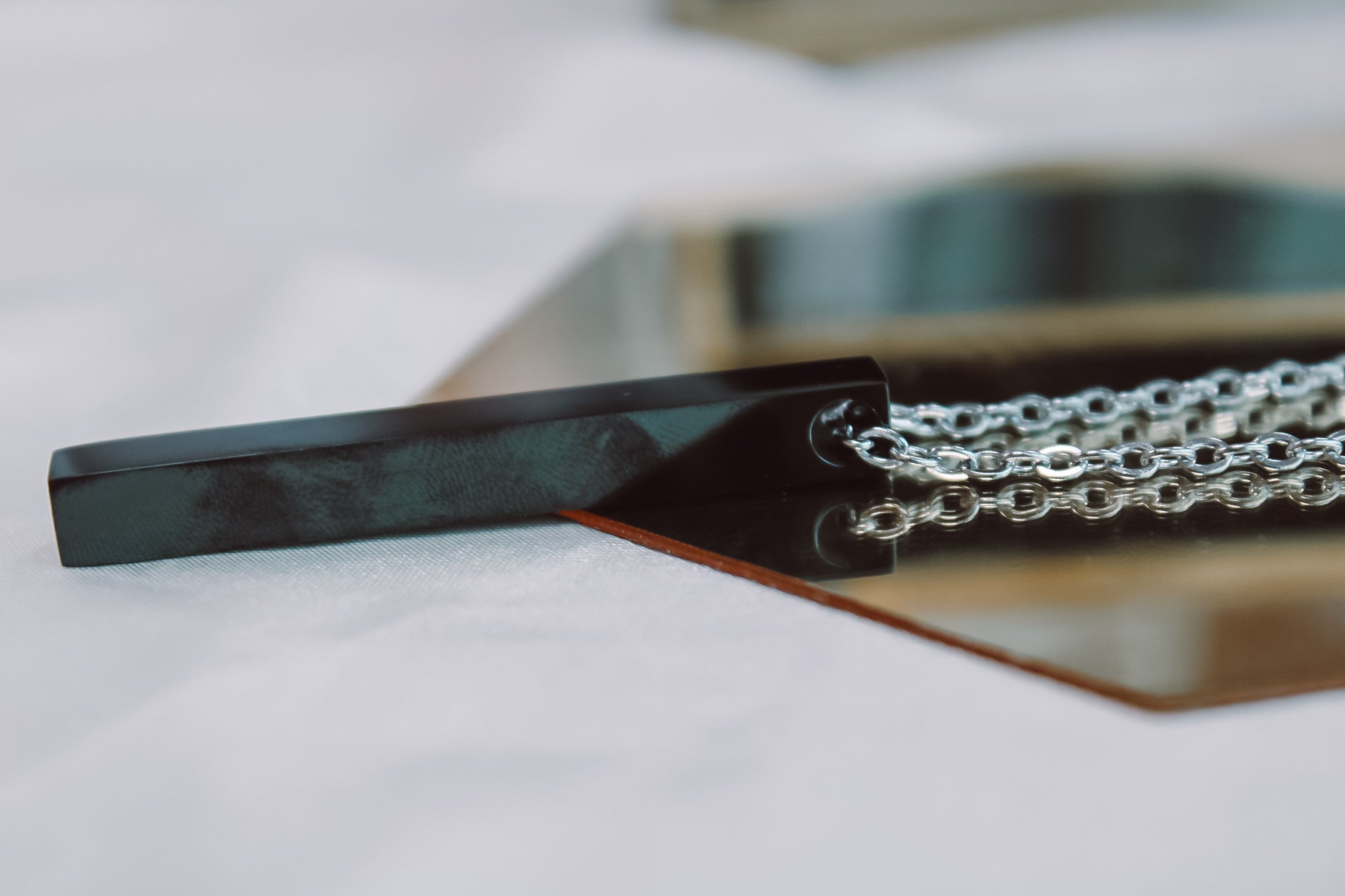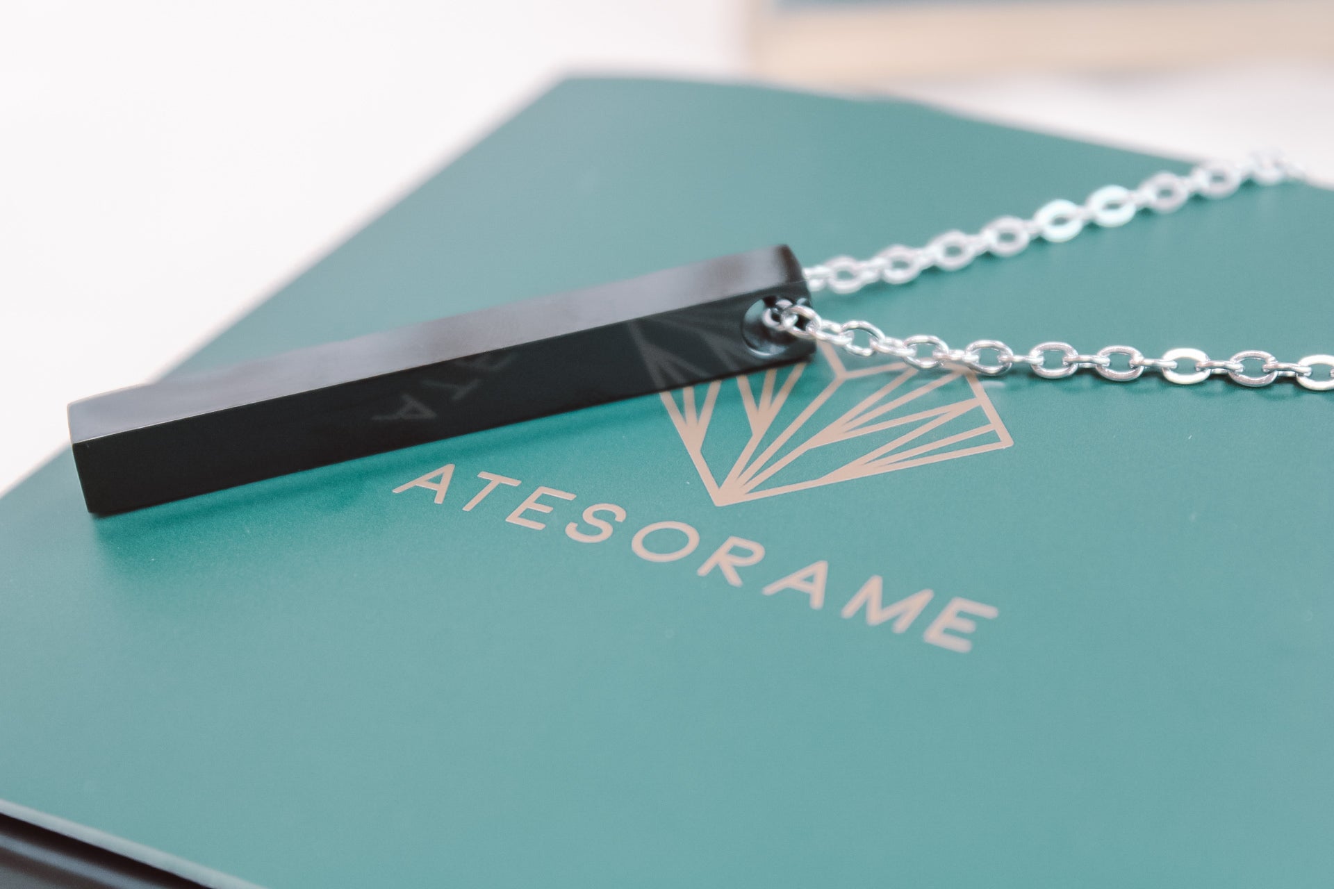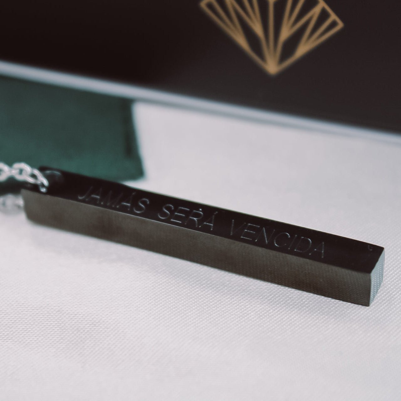 Collar Soul – Una joya profunda y significativa que te permite llevar lo que más amas en cada uno de sus lados. Este collar de diseño minimalista cuenta con un colgante rectangular de 50 mm x 6 mm, que se puede grabar por sus 4 caras con hasta 15 caracteres por lado, incluyendo nombres, fechas especiales, palabras poderosas o símbolos predeterminados como un corazón, estrella o infinito.