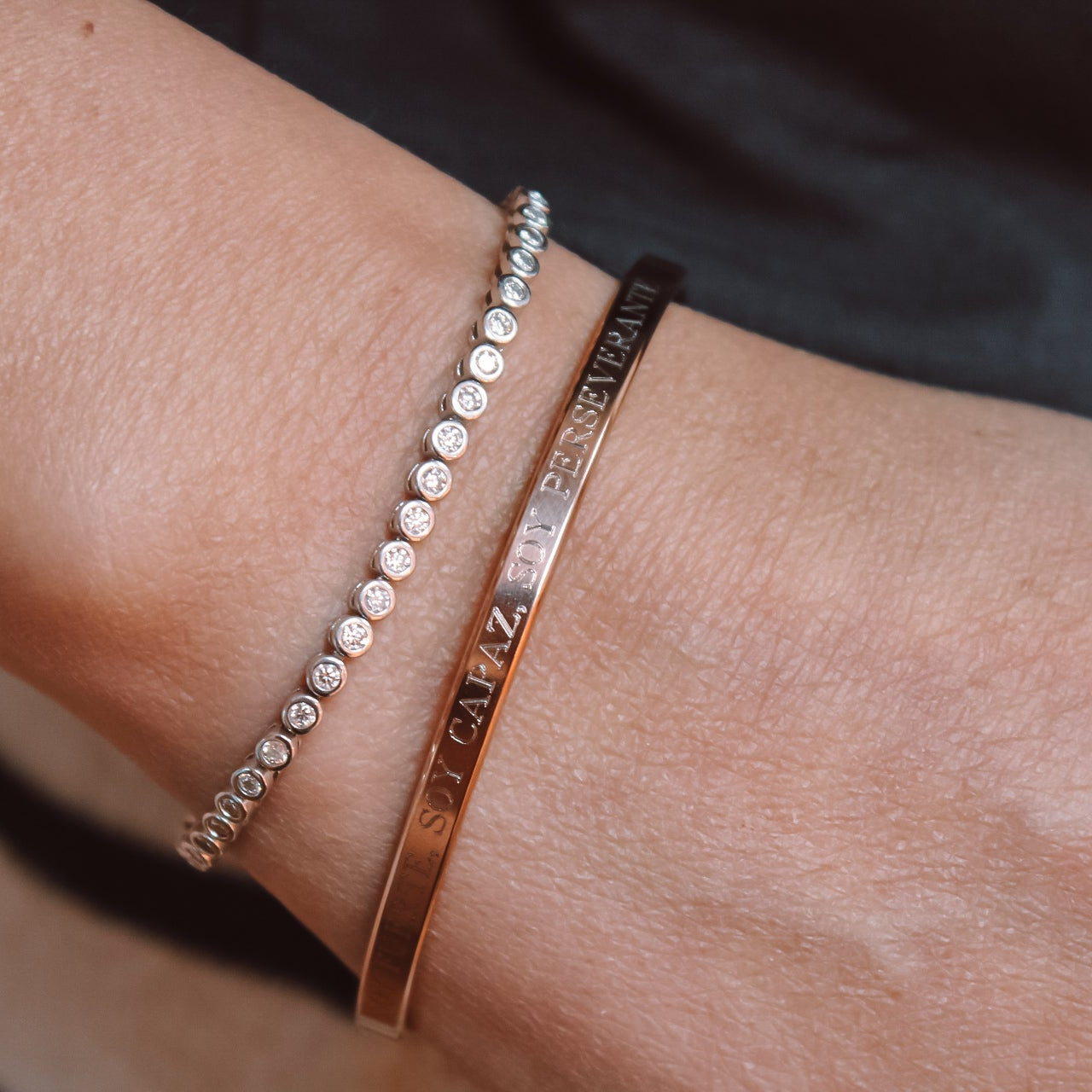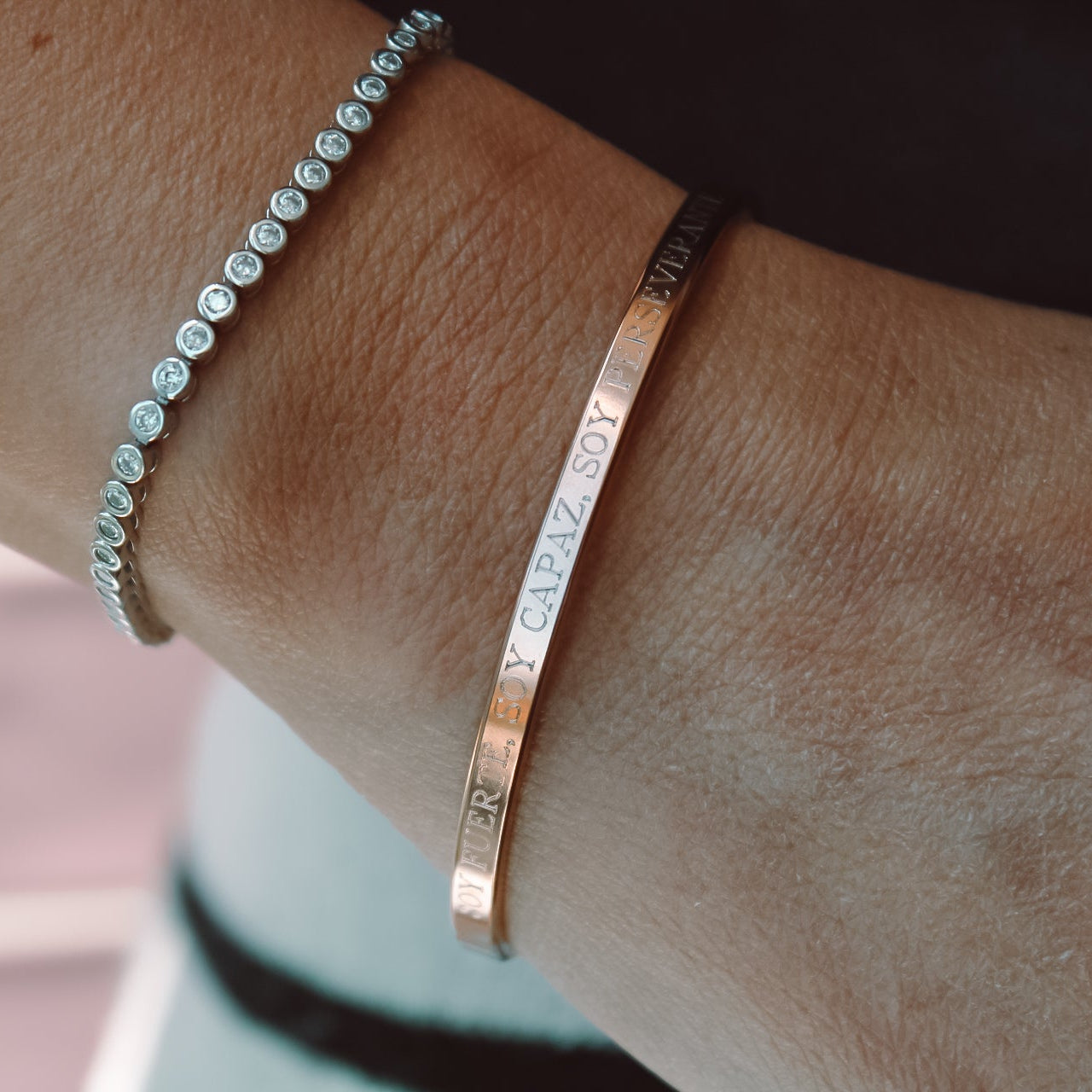 Su frase grabada —“Soy fuerte, soy capaz, soy perseverante”— es un recordatorio diario de tu fortaleza interior y de todo lo que eres capaz de lograr.