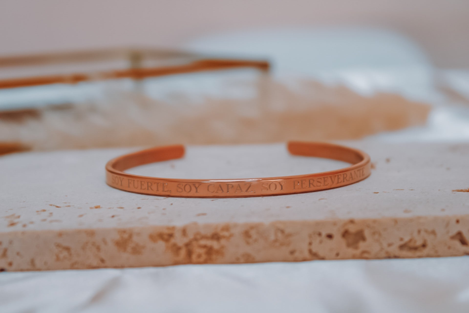 Esclava Manifiesta "Soy fuerte, soy capaz, soy perseverante" Oro Rosa - 4mm