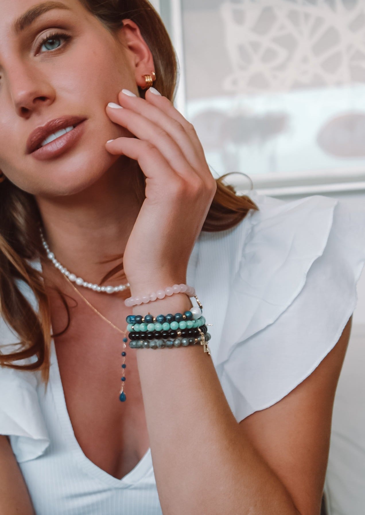 Descubre la elegancia y el poder del cuarzo rosa con nuestra pulsera elástica de piedras naturales. Cada pulsera incluye charms de protección a tu elección, bañados en oro de 18 quilates, libres de níquel y hipoalergénicos. El cuarzo rosa es conocido por sus propiedades de amor y calma, brindándote una sensación de bienestar y armonía. Esta pulsera no solo es un accesorio sofisticado, sino también un amuleto de buena energía para tu día a día.