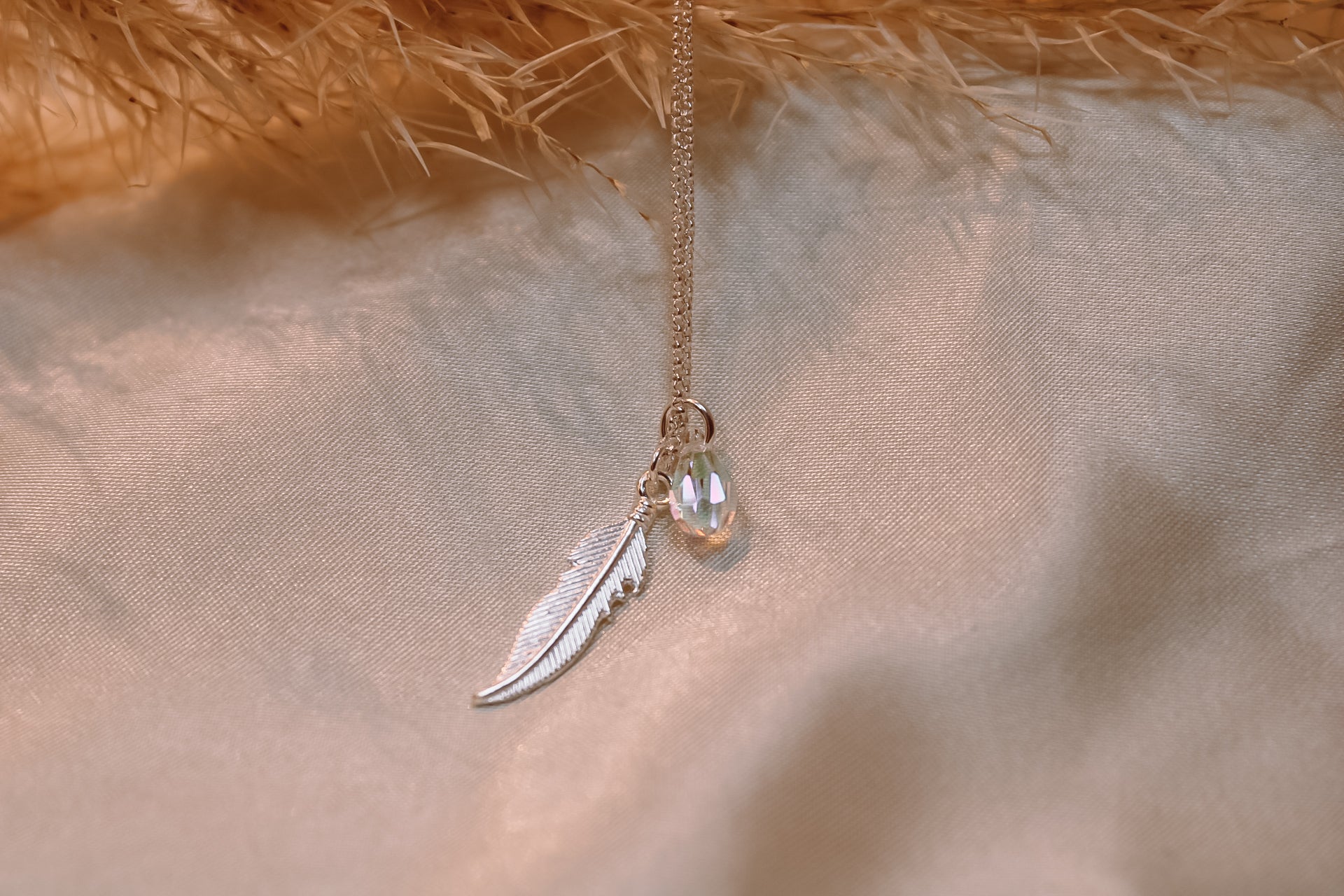 Este collar, diseñado en plata de ley 925, presenta una delicada pluma acompañada de un cristal Swarovski, formando una joya sutil pero significativa. La pluma, como símbolo ancestral, representa la libertad, la conexión con lo divino y la protección espiritual, recordándonos que siempre estamos guiados y acompañados desde lo alto.