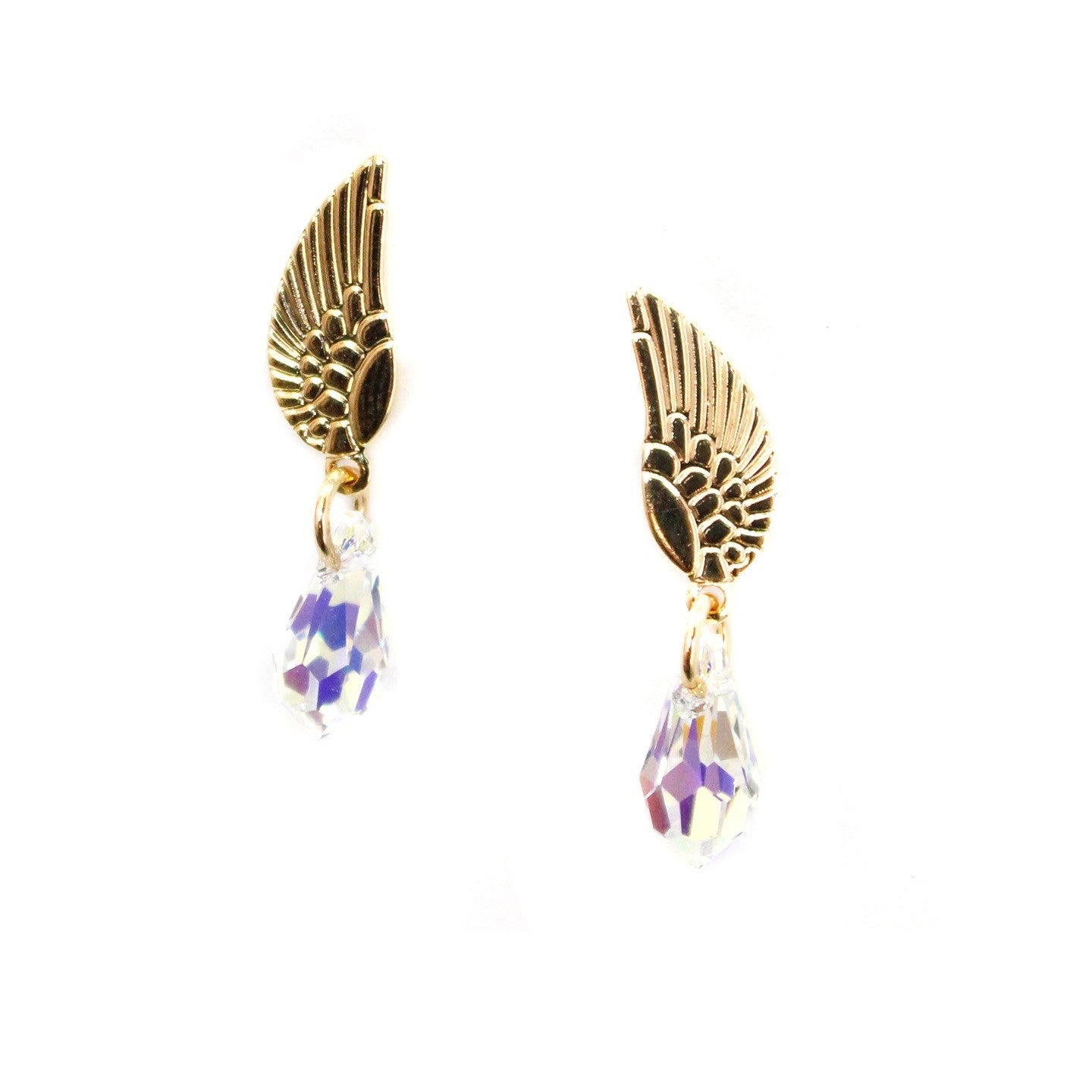Dale un toque brillante a tu look con nuestros Aros colgantes alas de angel y cristal swarovski.