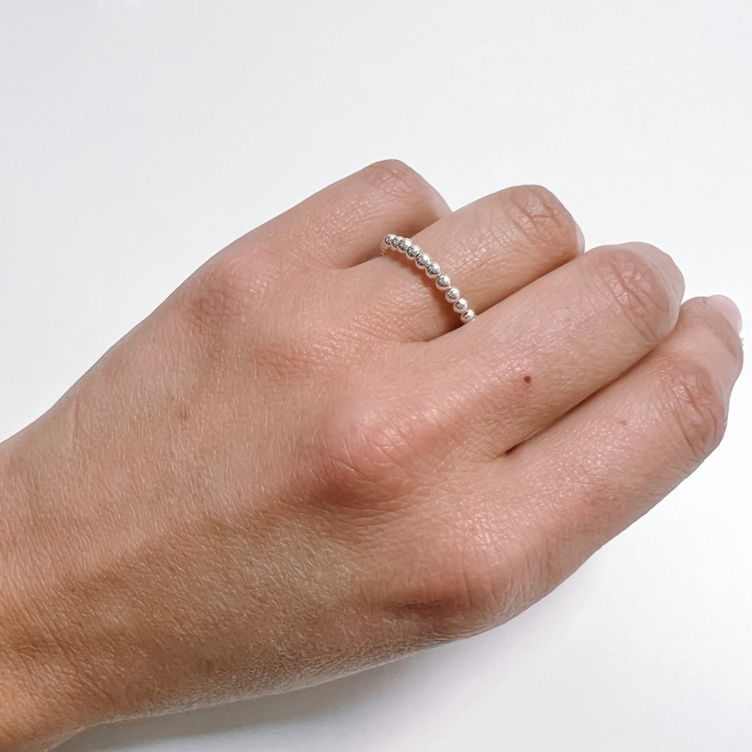 Descubre la elegancia atemporal con nuestro Anillo de Bolitas en Plata de Ley 925. Un diseño minimalista de bolitas de 2,5mm, este anillo elasticado se adapta a casi cualquier tamaño de dedo, ofreciendo comodidad y estilo en cada movimiento. Ideal para añadir un toque sofisticado a tu look diario o para complementar ocasiones especiales. Hecho con materiales de alta calidad, este anillo es una joya imprescindible en tu colección.