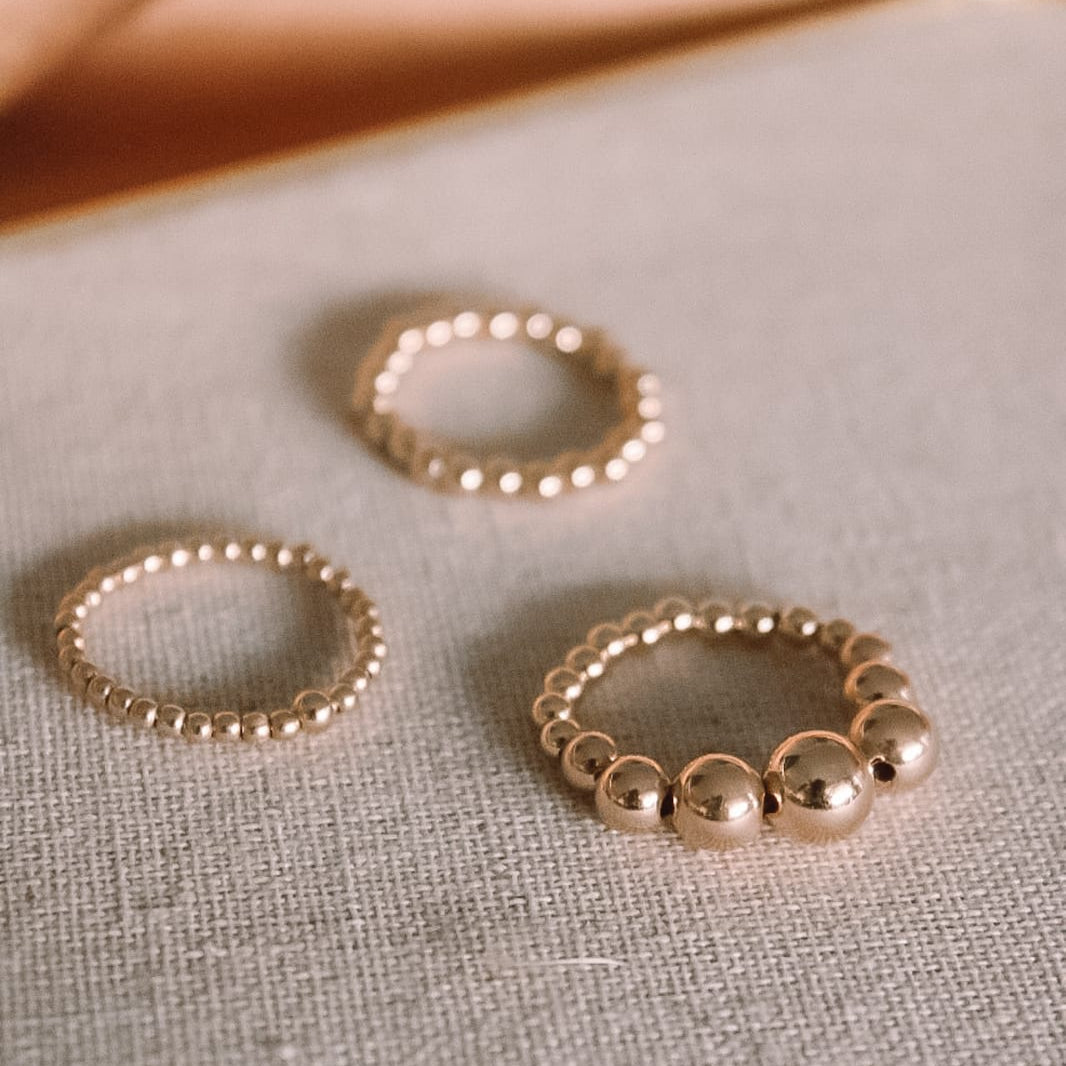 Éste delicado anillo fue diseñado en bolitas huecas de oro 14k para que puedas usarlo siempre, sin necesidades de preocuparte por sus cuidados, ya que es de oro.