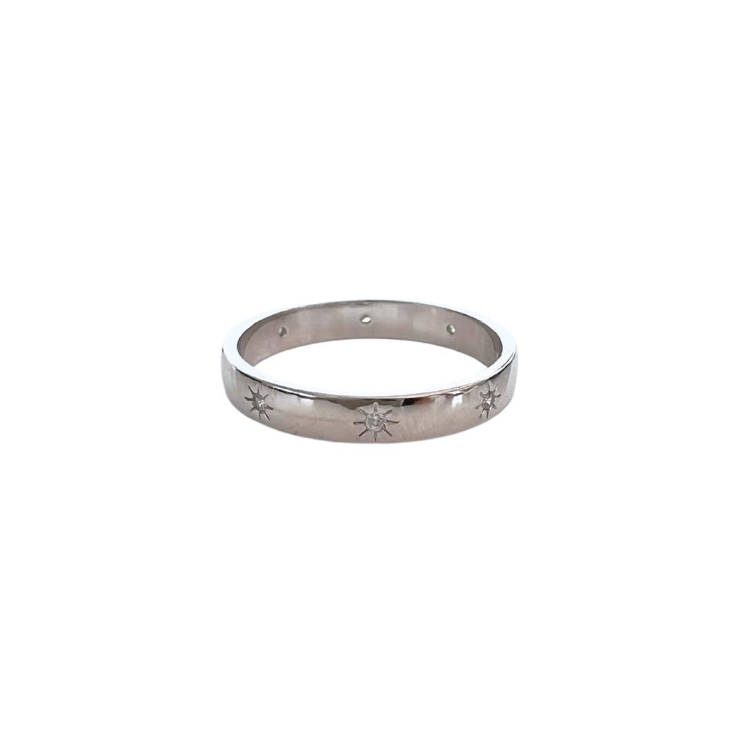 Anillo de plata 925, con estrellas fugaz y mini circones.