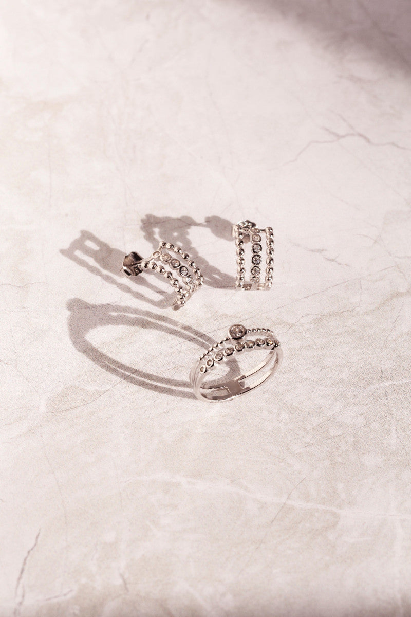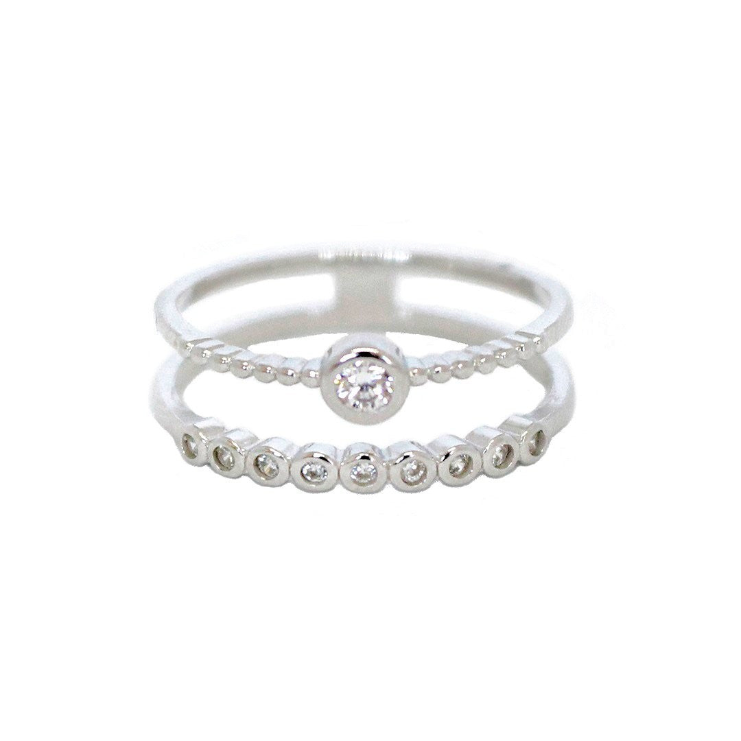 Anillo doble 2 en 1, compuesto por un Solitario y un cintillo de cristales.