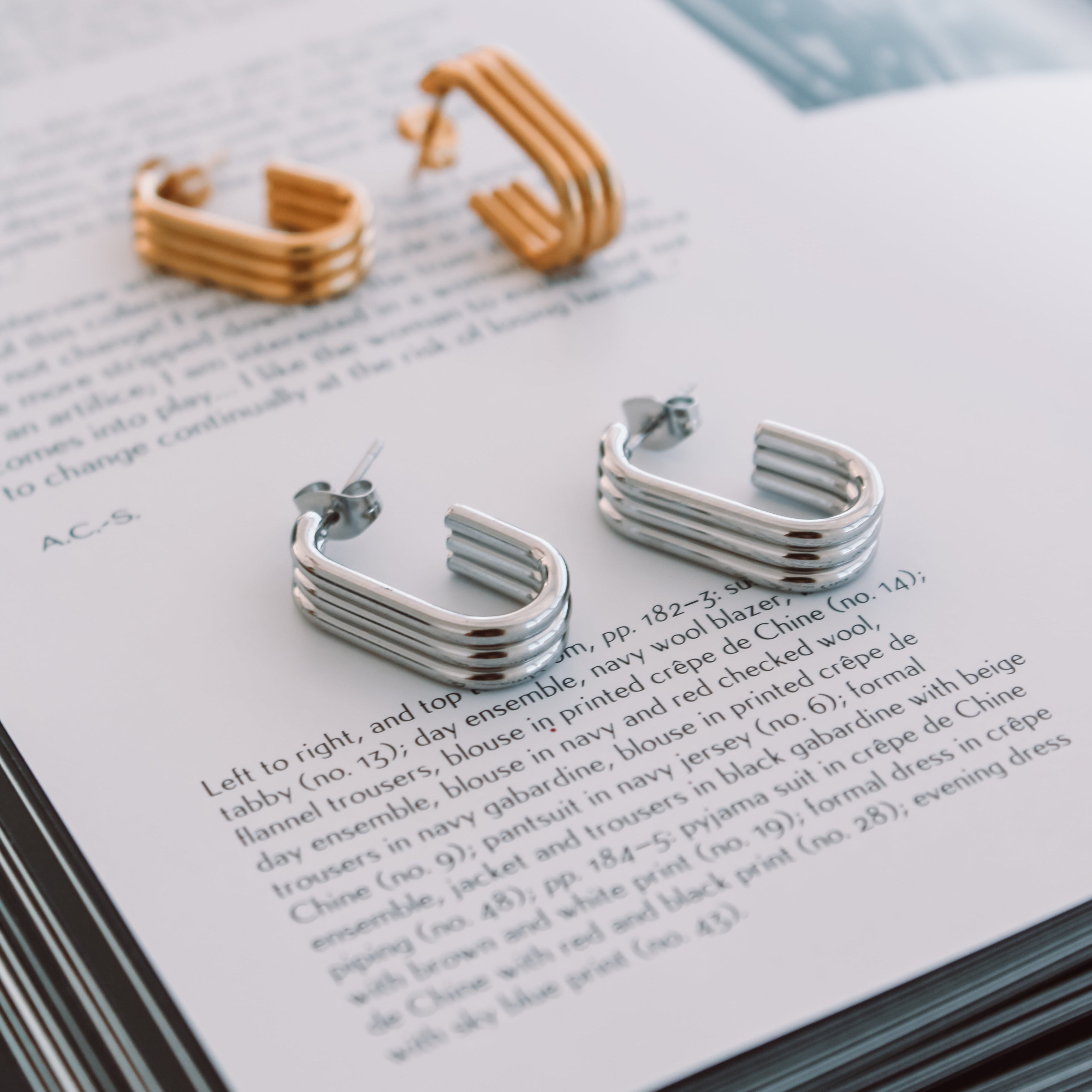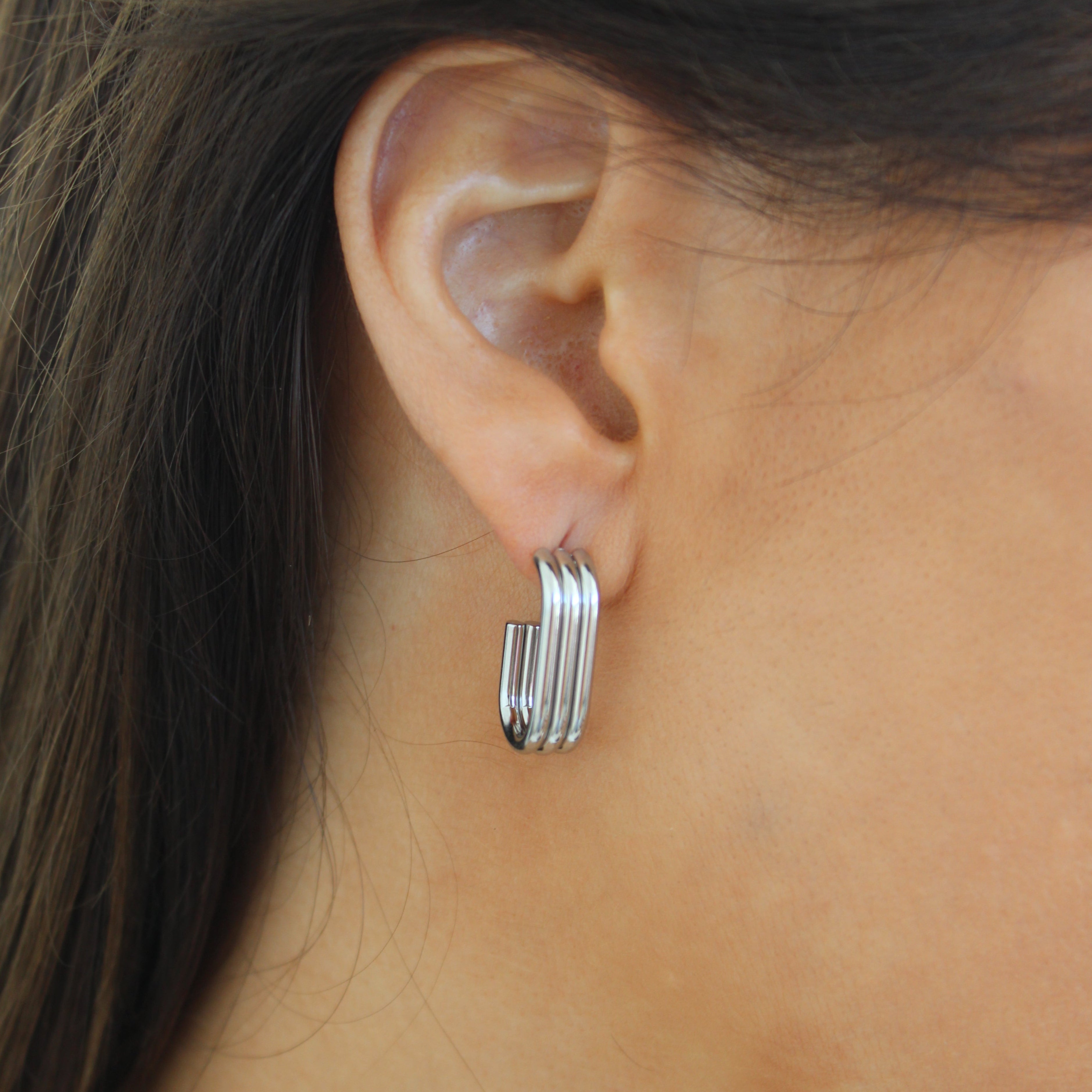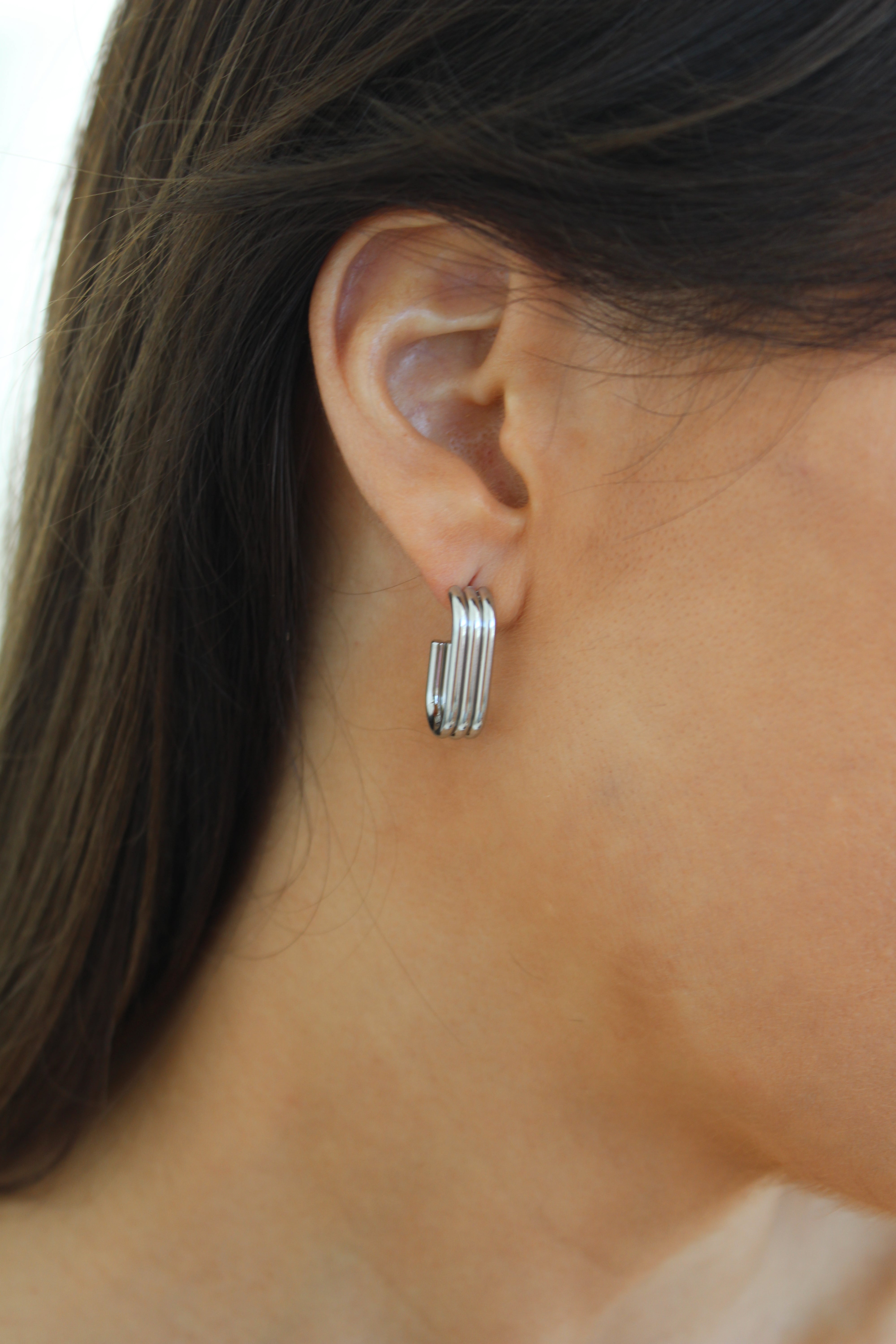 Un diseño moderno y atrevido que se roba todas las miradas. Estas argollas tipo tubo, con tres juntas rectangulares fusionadas, están elaboradas en acero quirúrgico, combinando durabilidad con un acabado elegante. Su forma geométrica y volumen las convierten en el accesorio ideal para darle carácter y estilo a tu look.