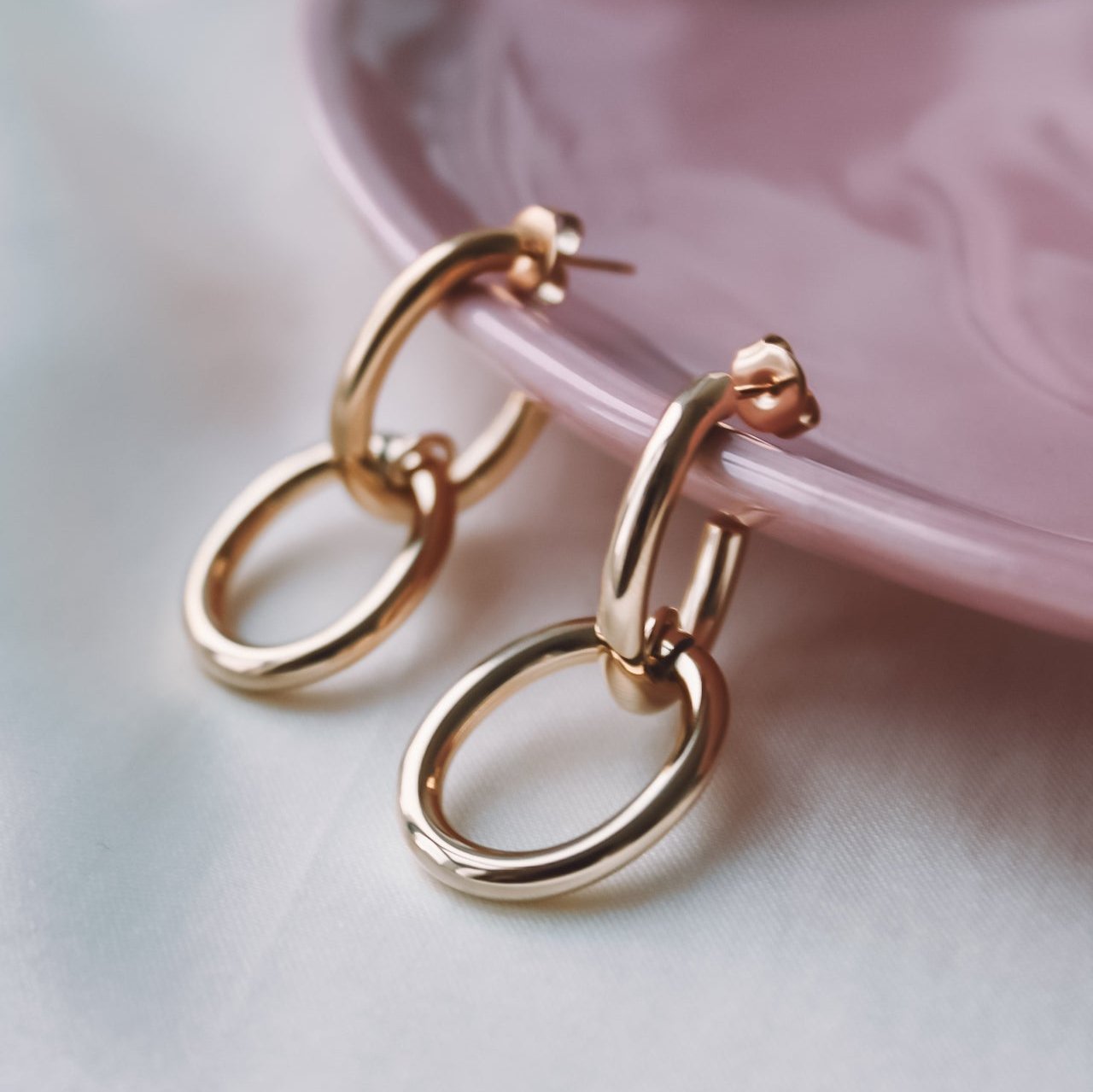 Más que un look, un statement. Estas argollas oversize de diseño tubular, con 37mm de alto por 17mm de ancho, destacan por su estilo y sofisticación. Chapadas en oro de 18k, son libres de níquel, hipoalergénicas y waterproof. Están fabricadas en resistente acero quirúrgico para garantizar durabilidad y comodidad.