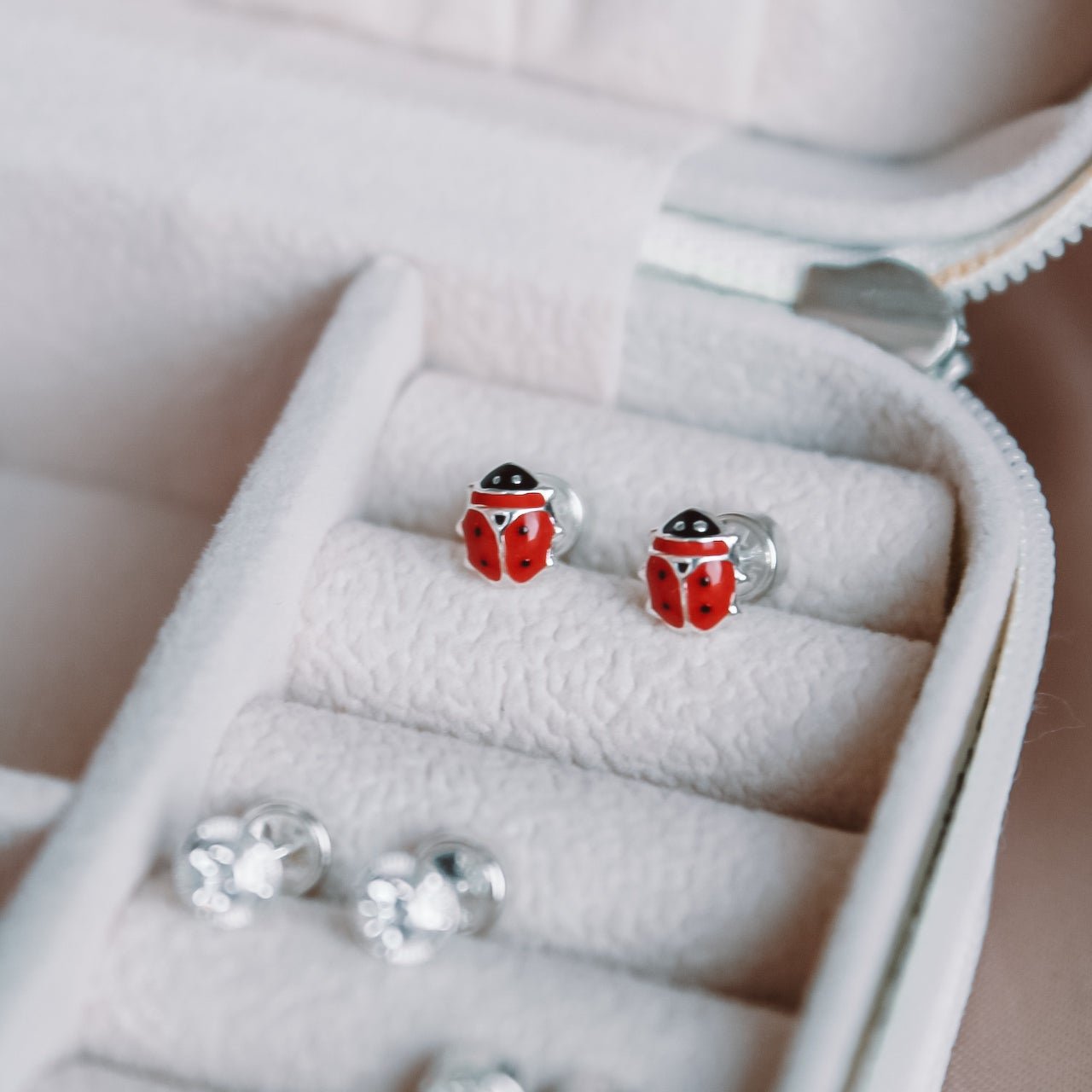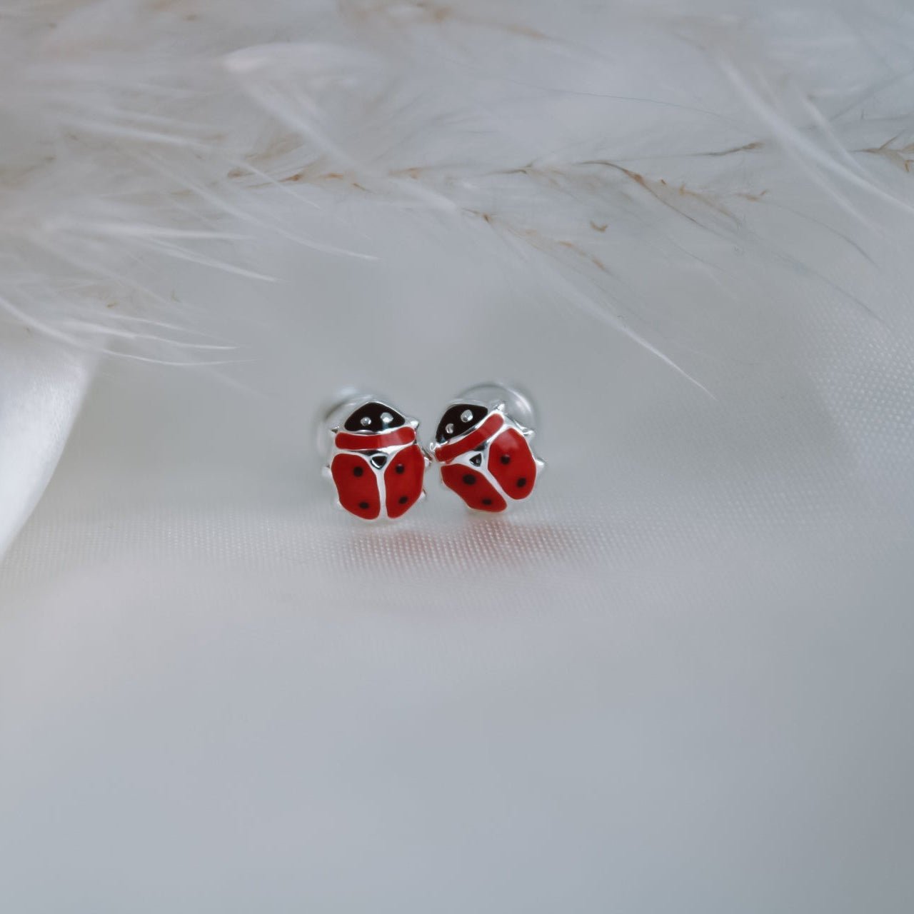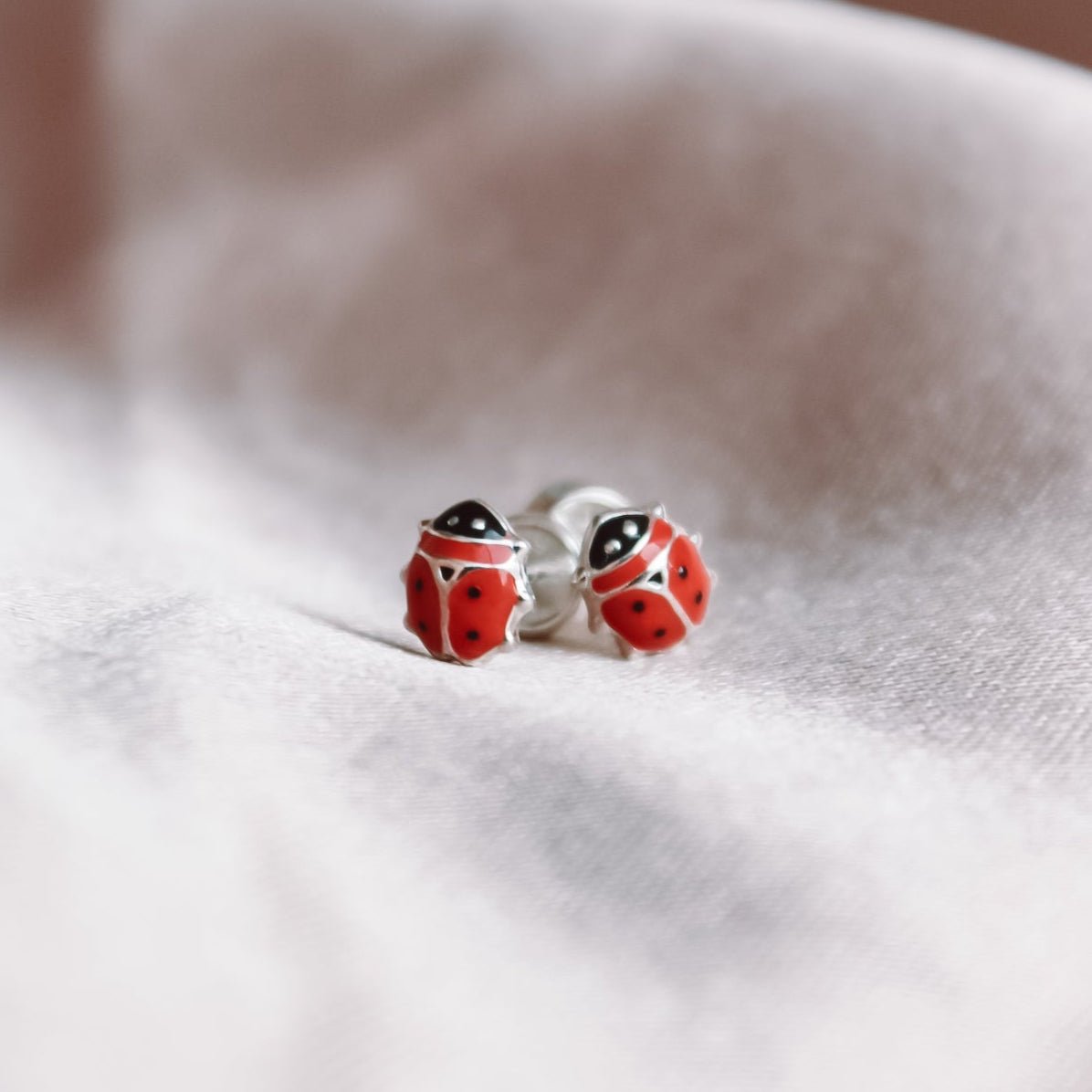 Su diseño de chinita esmaltada de aprox. 5 mm aporta un toque de color y dulzura, convirtiéndolos en un detalle lleno de ternura y encanto. Además, cuentan con un tope plano a presión, que entrega mayor seguridad y comodidad en el uso diario.
