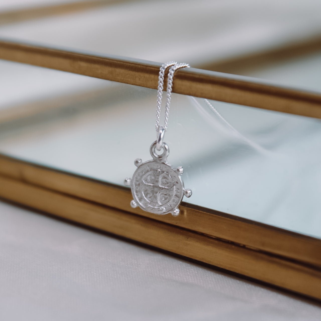 Collar Amuleto San Benito – Un símbolo de protección y fortaleza espiritual. Este collar, elaborado en plata de ley 925, lleva la medalla de San Benito, conocida por ser uno de los amuletos más poderosos contra las malas energías y todo tipo de peligros. Representa la fe, la protección divina y el resguardo frente a las adversidades del día a día.
