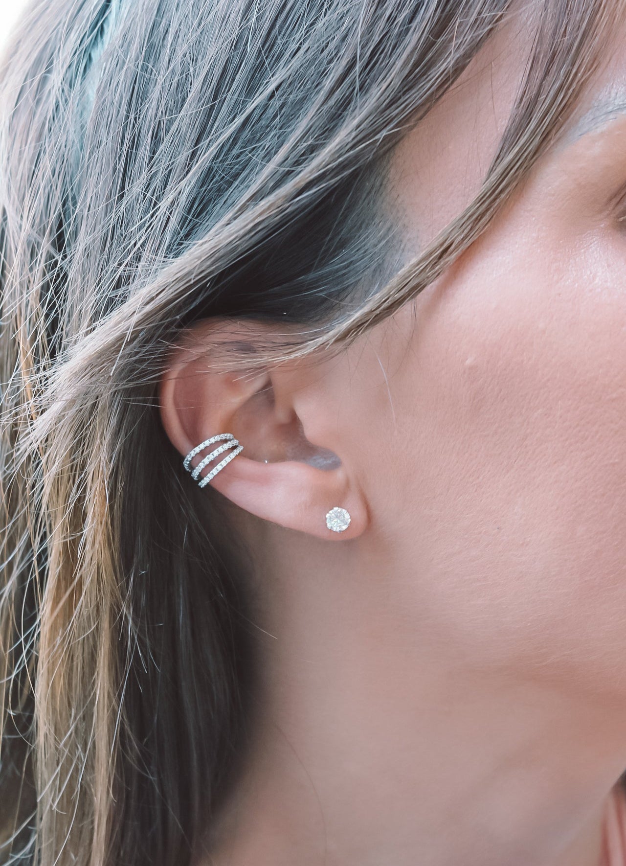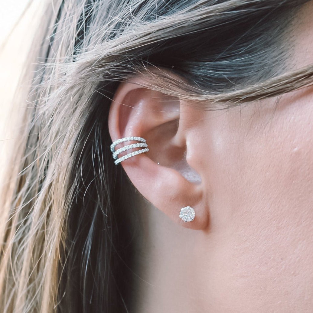 El accesorio perfecto para un look moderno y sofisticado. Su diseño de tres argollas con mini circones crea el efecto de múltiples piercings sin necesidad de perforación. Ideal para lucir en el conch y elevar tu estilo con un toque sutil de elegancia.
