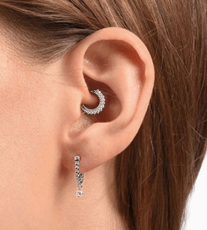 Piercing diseñado para el cartilago de la oreja, llamado "daith" en perforación.