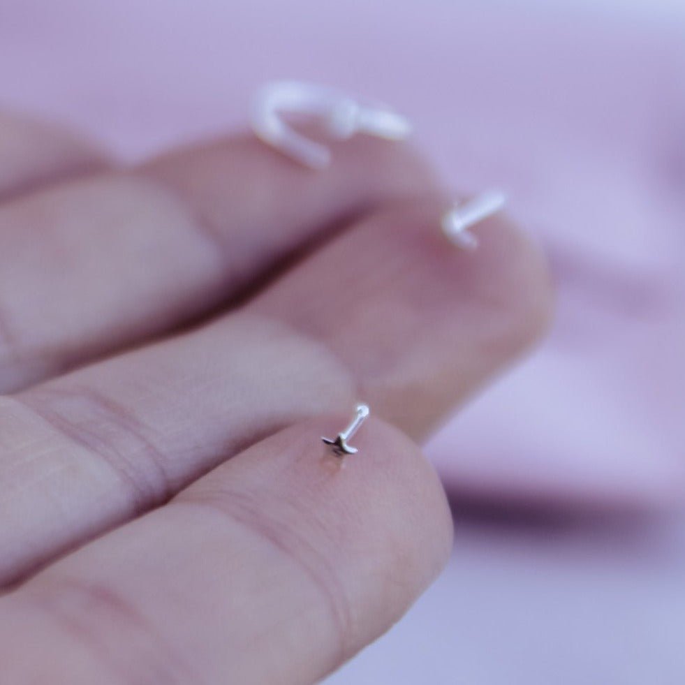 Piercing con diseño de mini estrella para nariz, fabricado en plata de ley 925. Fácil de poner y quitar, ligero y cómodo de llevar.