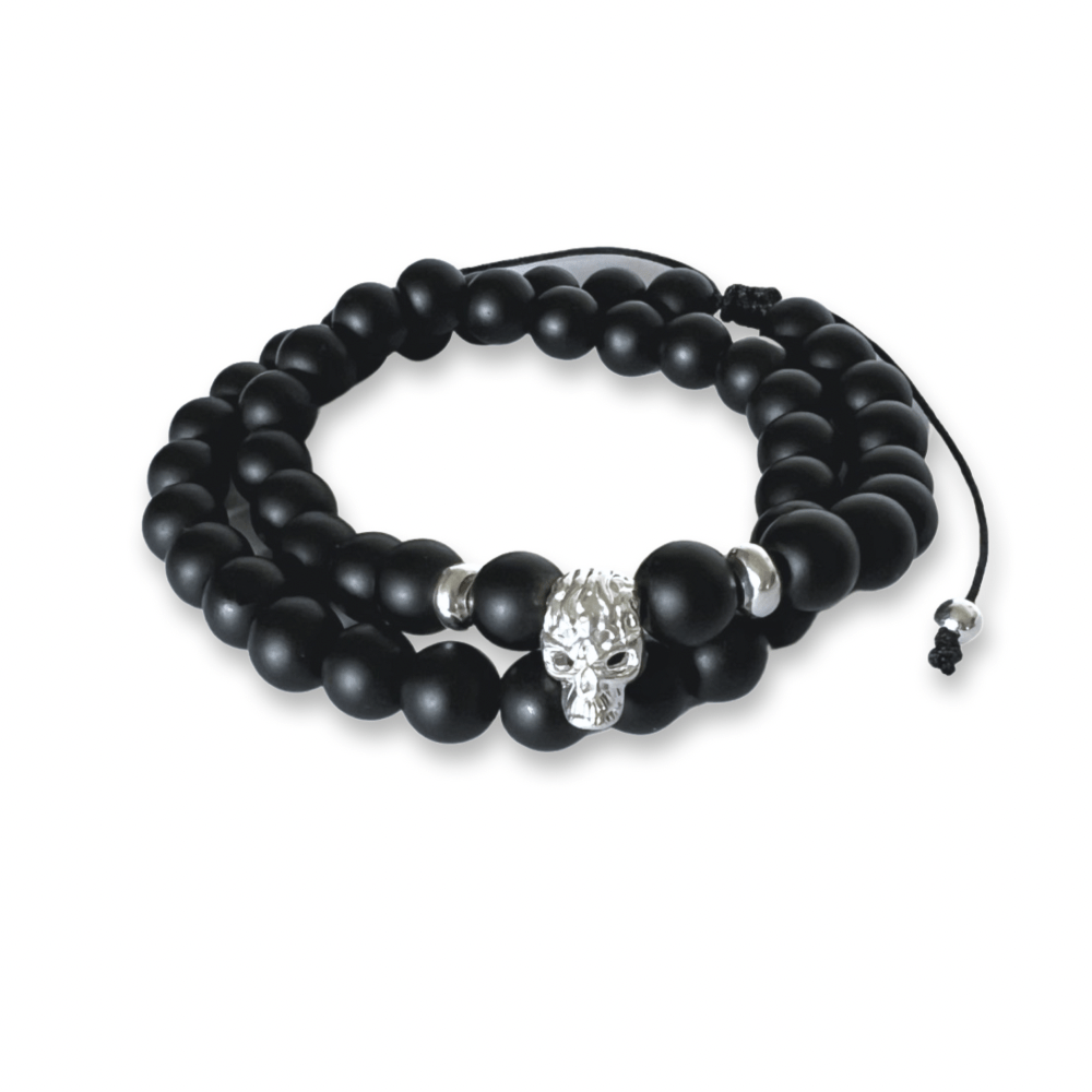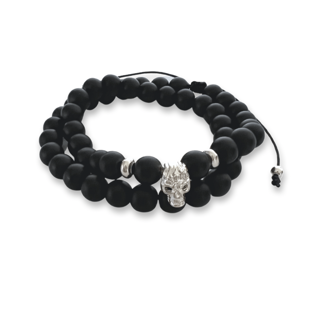Pulsera Doble Calavera Onix Matte