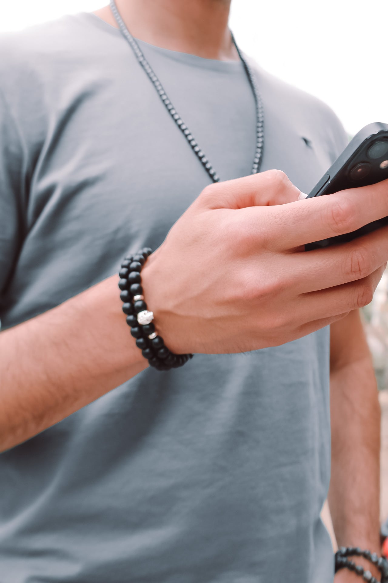 Pulsera de piedras naturales elasticada para hombre de onix negro matte, piedra de resistencia, perseverancia y conexión a tierra.