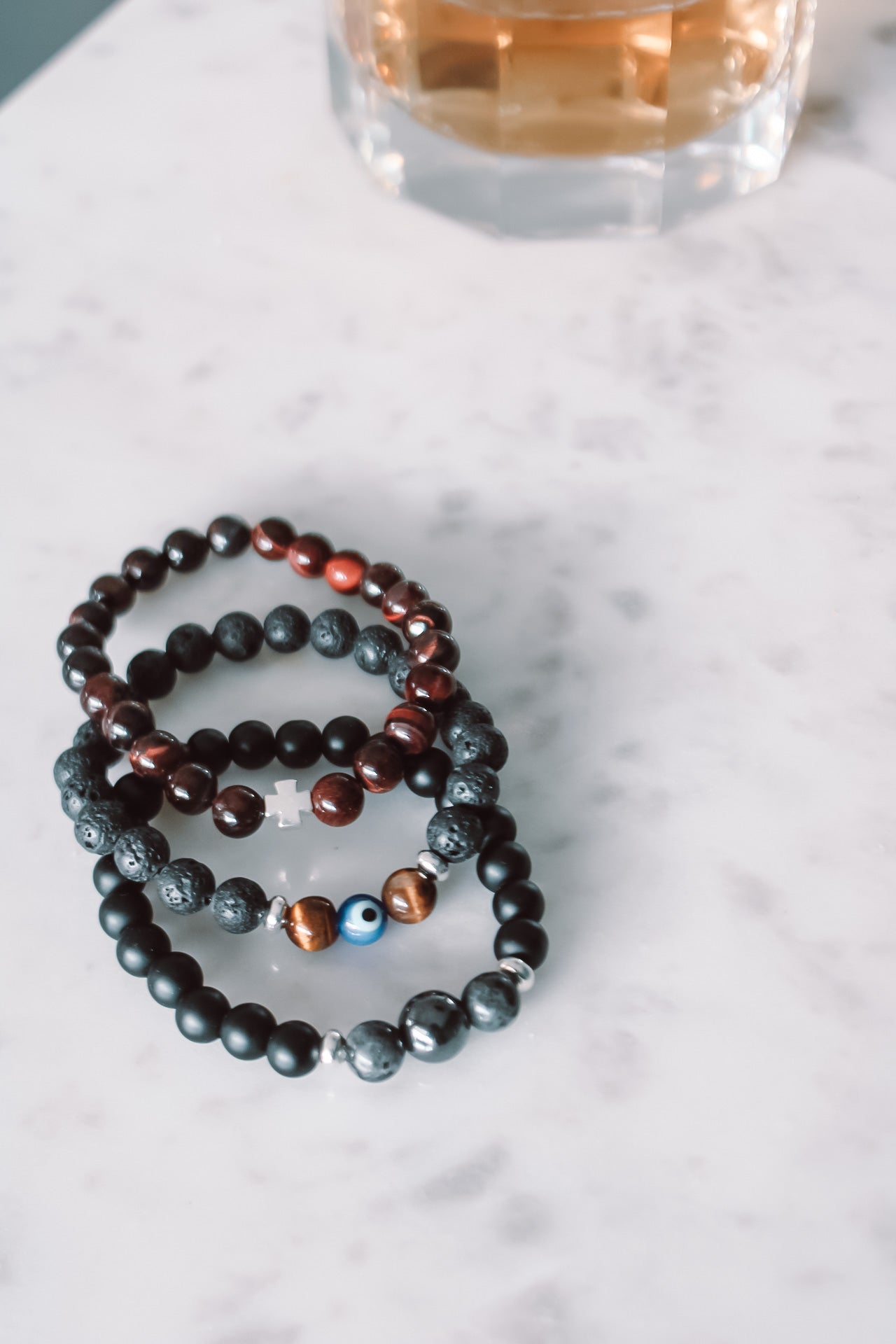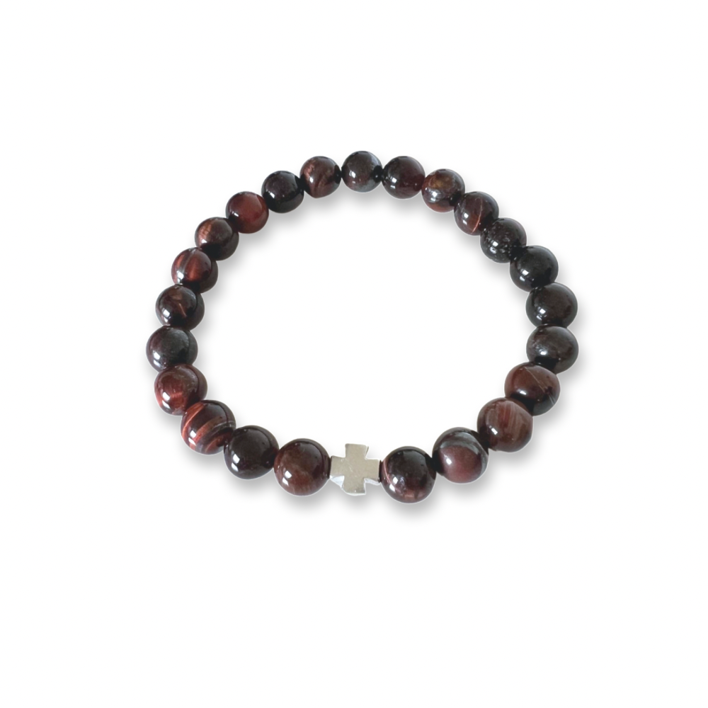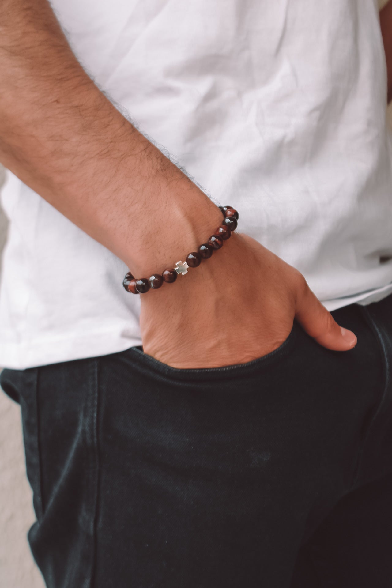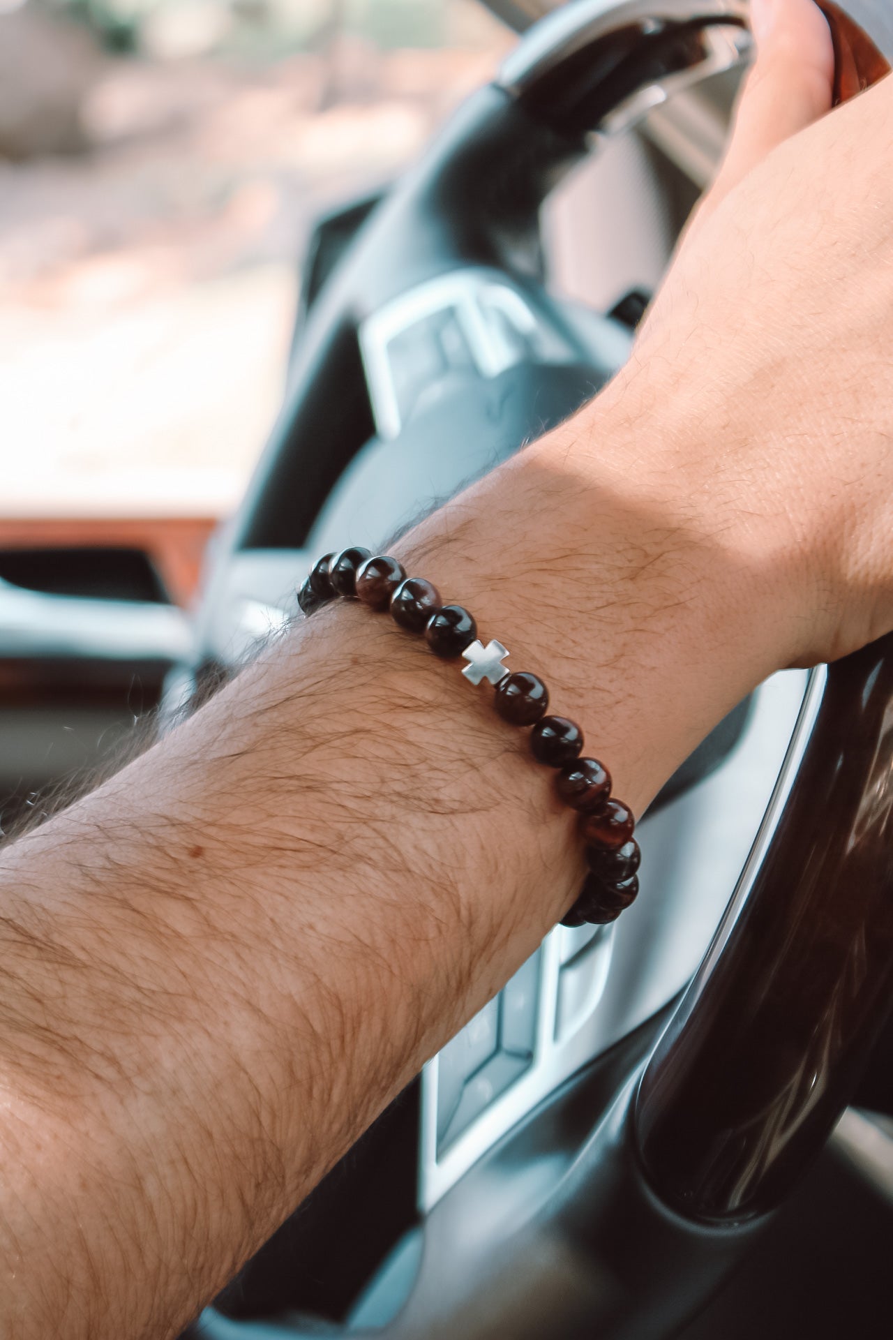 Pulsera de piedras naturales elasticada para hombre de ojo de buey, piedra de resistencia, perseverancia y conexión a tierra.