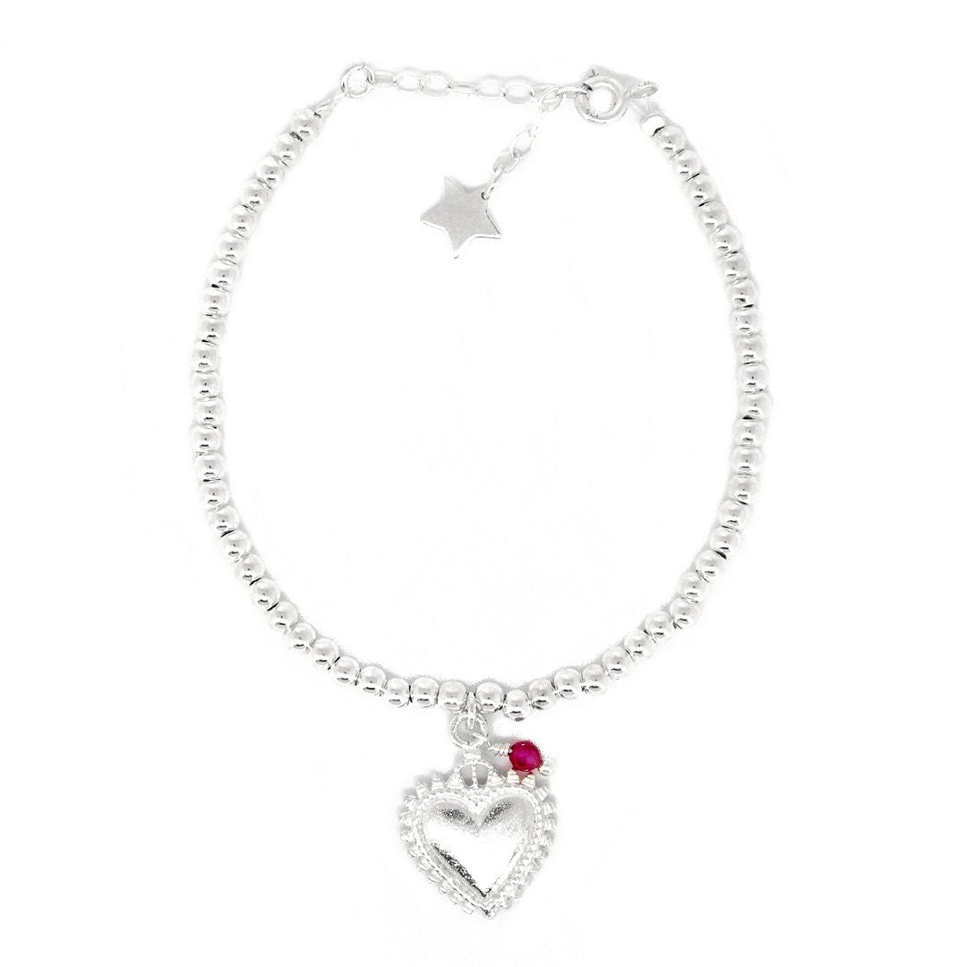 Pulsera de bolitas de plata 925, con Corazón Detente, Raíz de Rubí y estrellita guía.