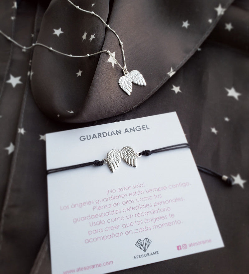 Pulsera de hilo con dije de Plata 925 en forma de alas de angel.