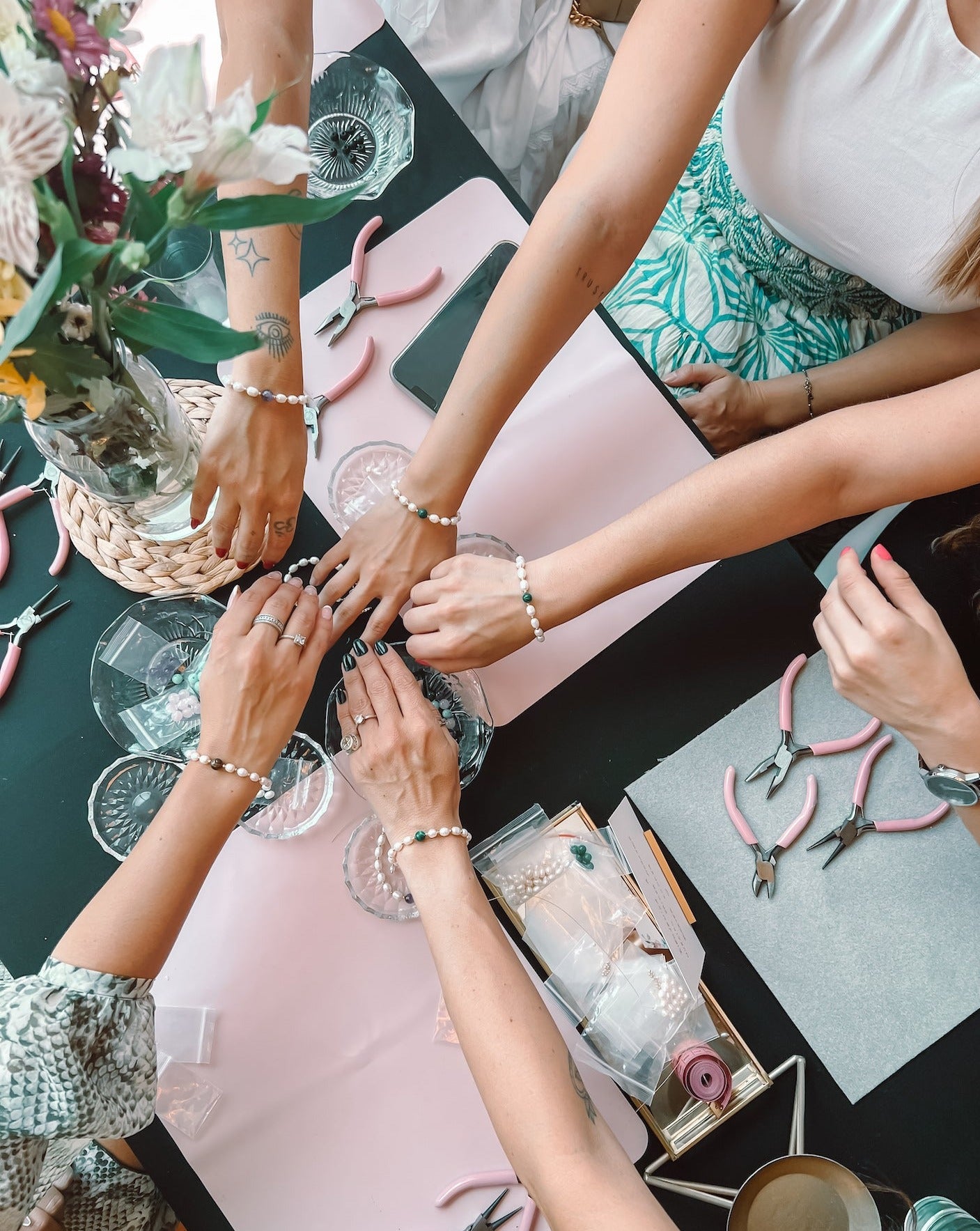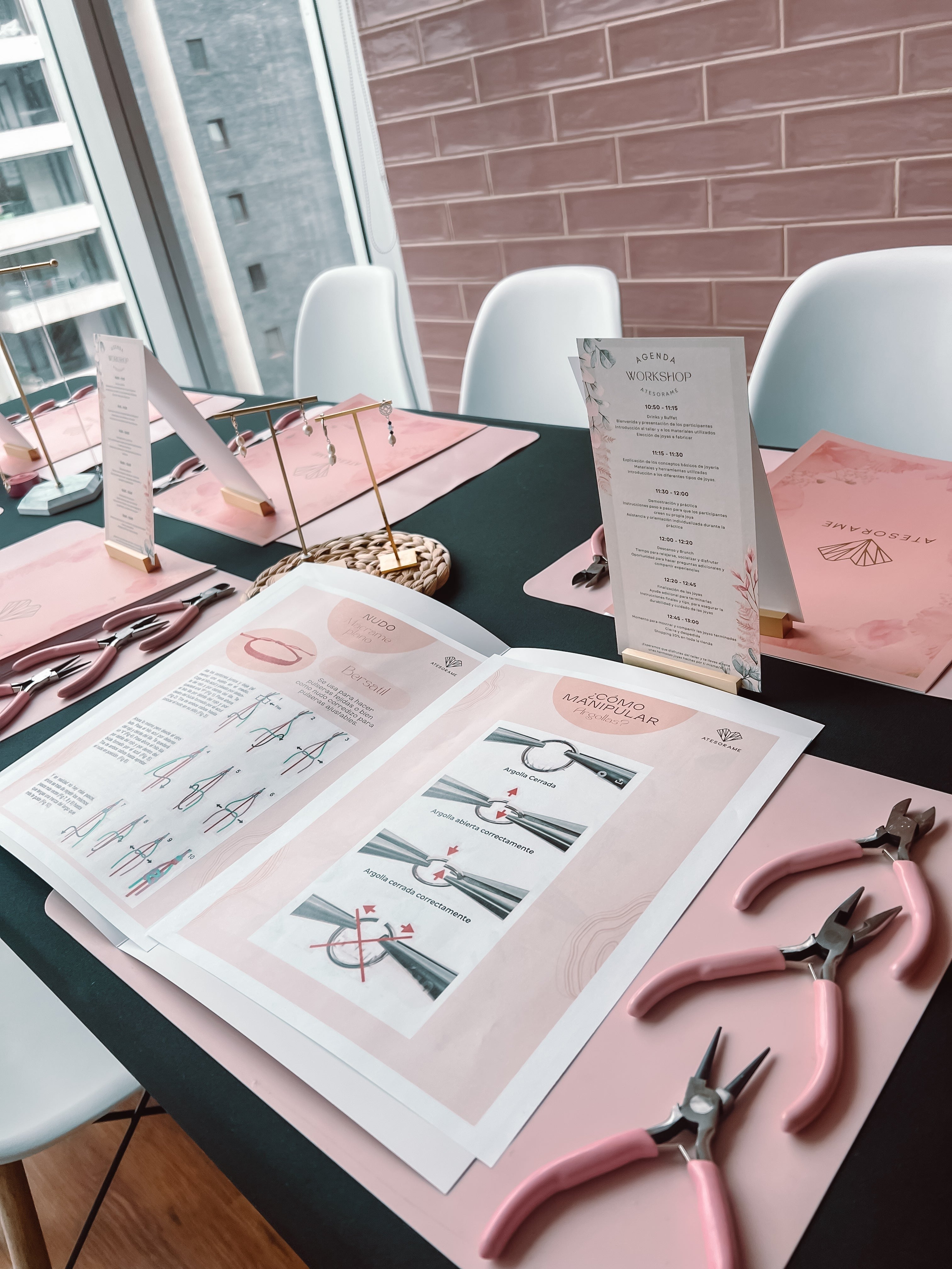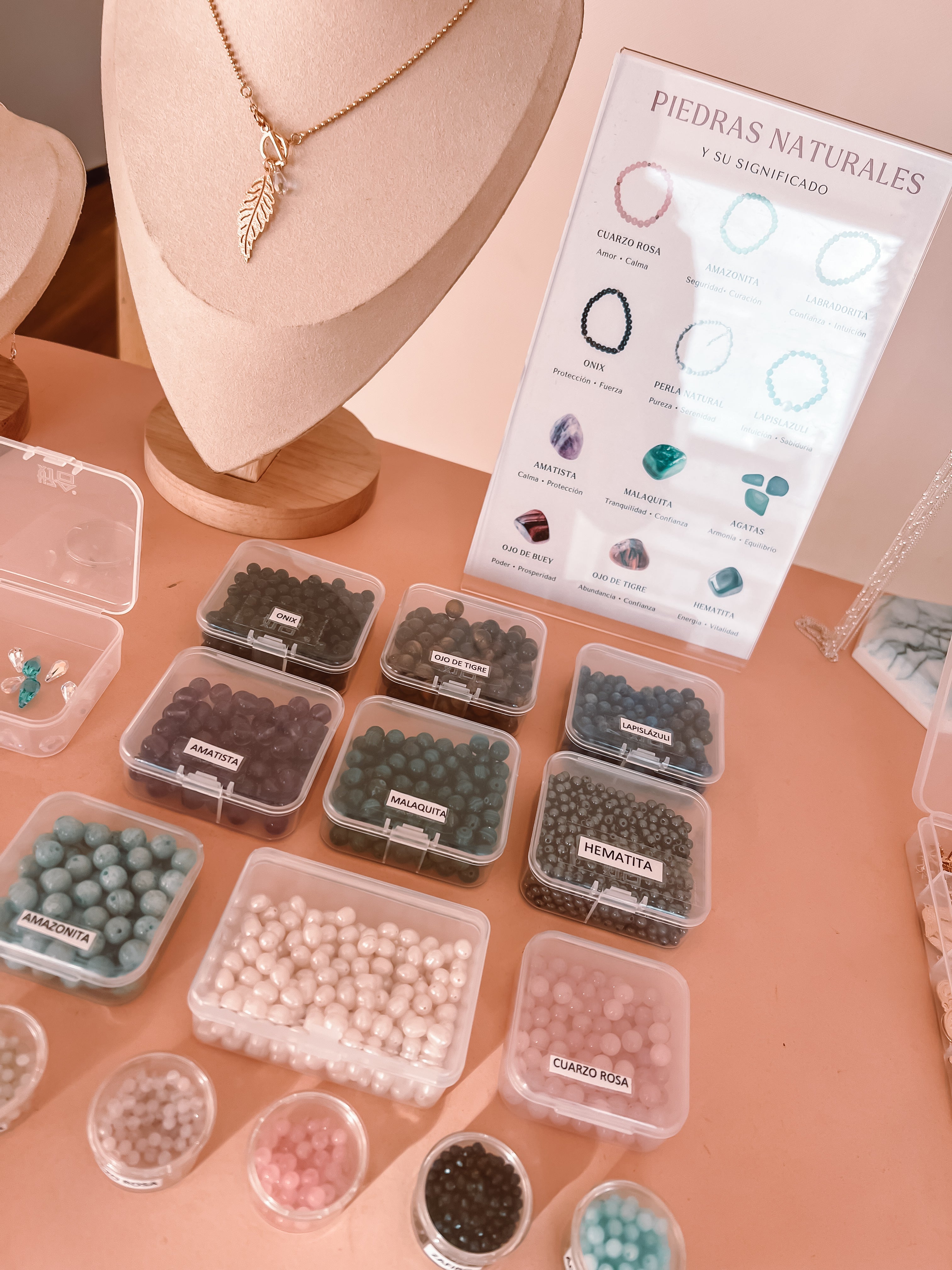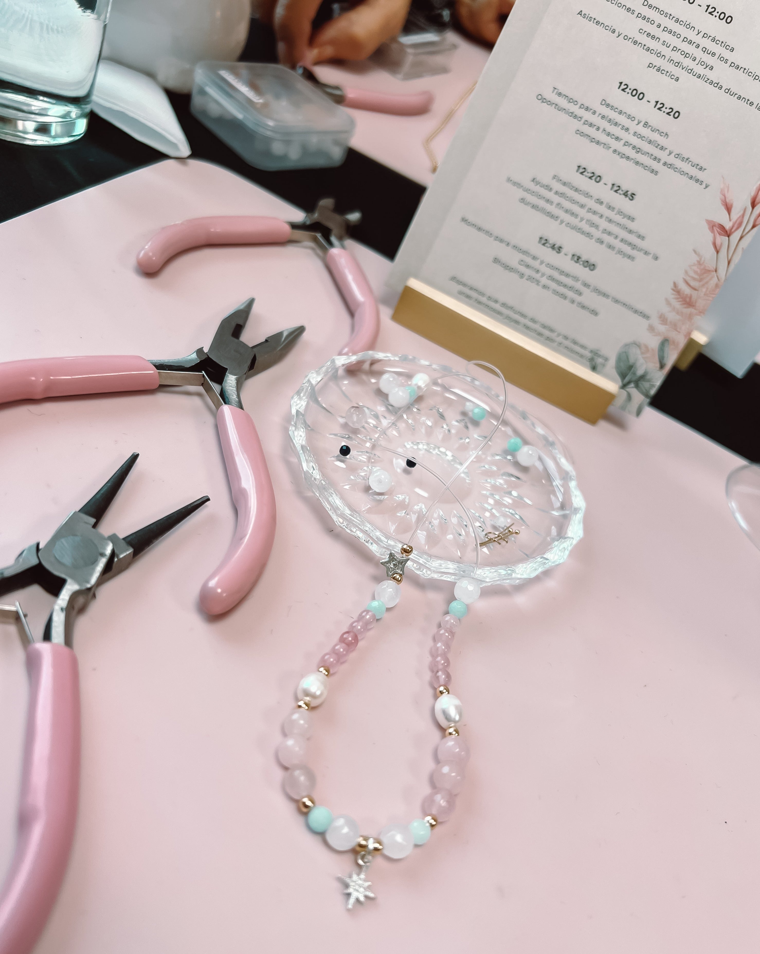¡Aprende, crea y diviértete! Disfruta de un entretenido Taller guiado de fabricación de joyas con nuestra fundadora y equipo experto donde aprenderás las Técnicas Básicas de bisutería y crearás tus propias joyas de plata 925 o baño de oro, perlas, piedras naturales y cristales.